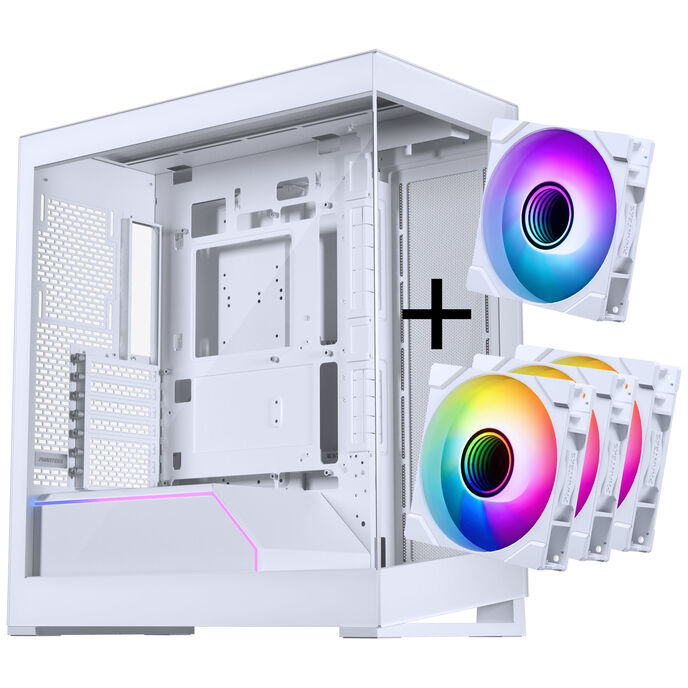PHANTEKS NV-Serie NV5 MK2 ATX-Gehäuse, Tempered Glass, DRGB - Matte White + 3er Pack M25 Gen2 PWM D-RGB Lüfter Reverse Blade + 1x Normal Fan - 120mm