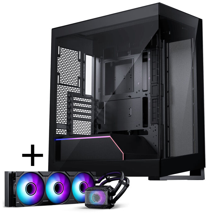 PHANTEKS Gehäuse-Bundle, mit schwarzem NV5 MK2 Midi-Tower, inklusive PHANTEKS Glacier One 360M25 Gen2 AiO-Wasserkühlung in Schwarz