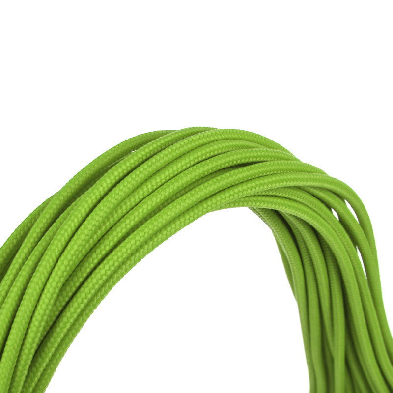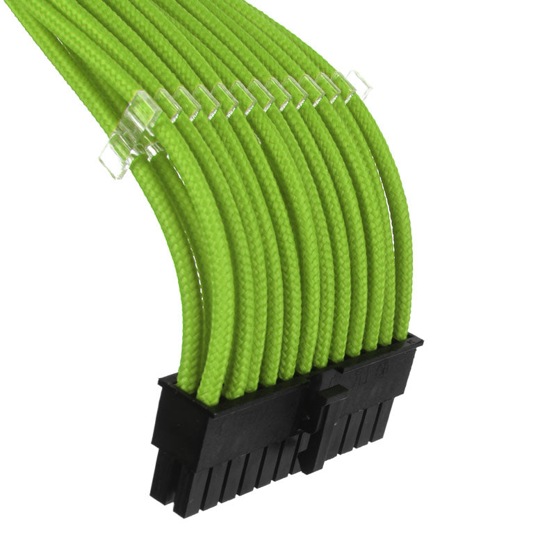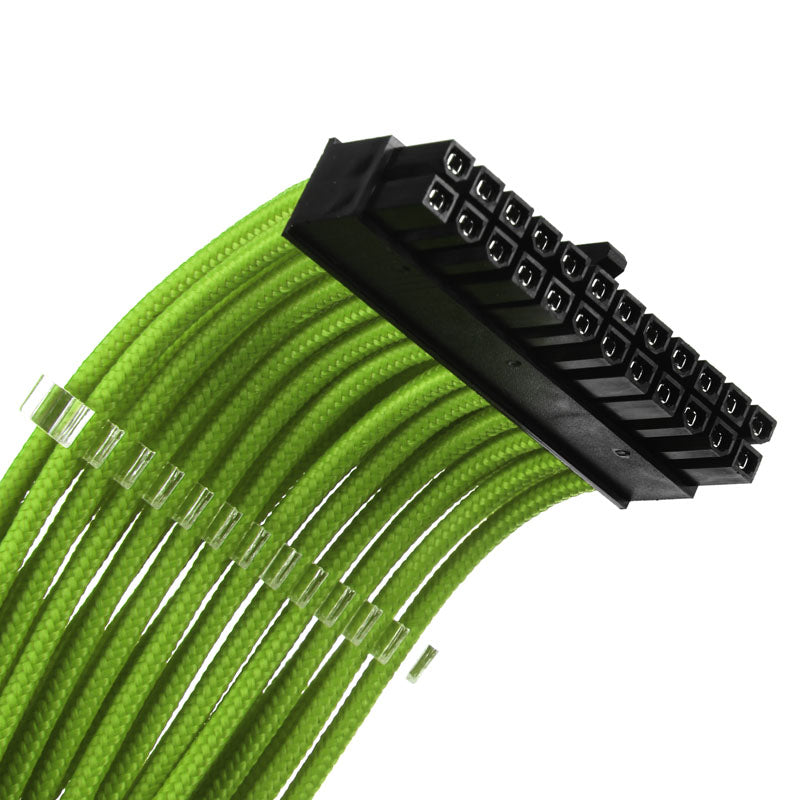 50 cm langes Verlängerungskabel-Set von Phanteks mit 1x 24-Pin-, 1x 4+4-Pin- 2x 6+2-Pin-Sleeve-Kabel - flexible grüne Textil-Sleeves, schwarze Anschlüsse und transparente Kabelkämme