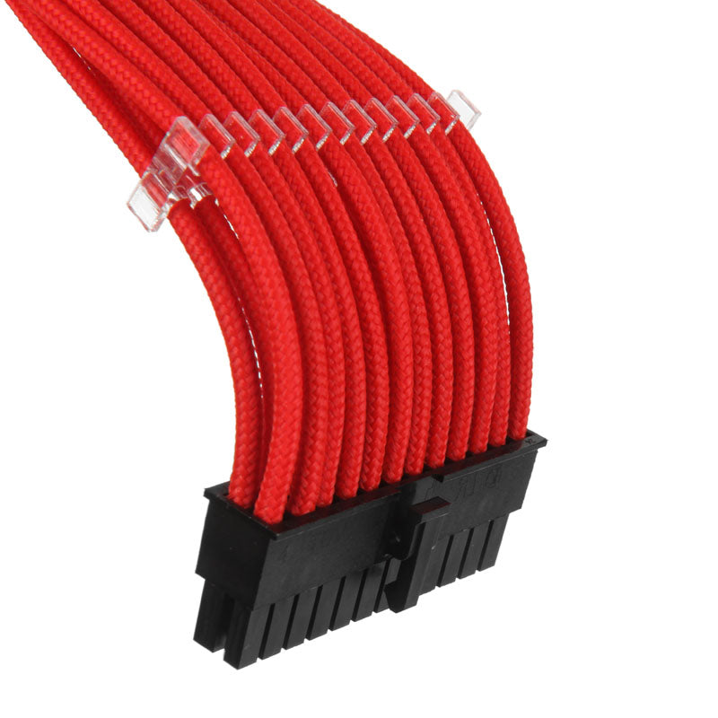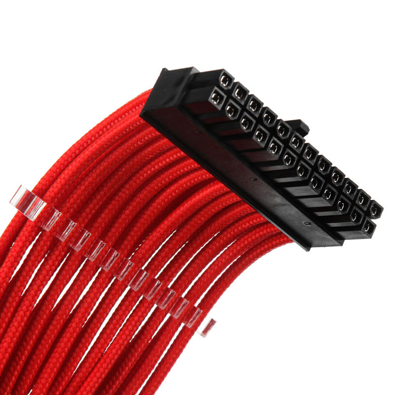 50 cm langes Verlängerungskabel-Set von Phanteks mit 1x 24-Pin-, 1x 4+4-Pin- 2x 6+2-Pin-Sleeve-Kabel - flexible rote Textil-Sleeves, schwarze Anschlüsse und transparente Kabelkämme