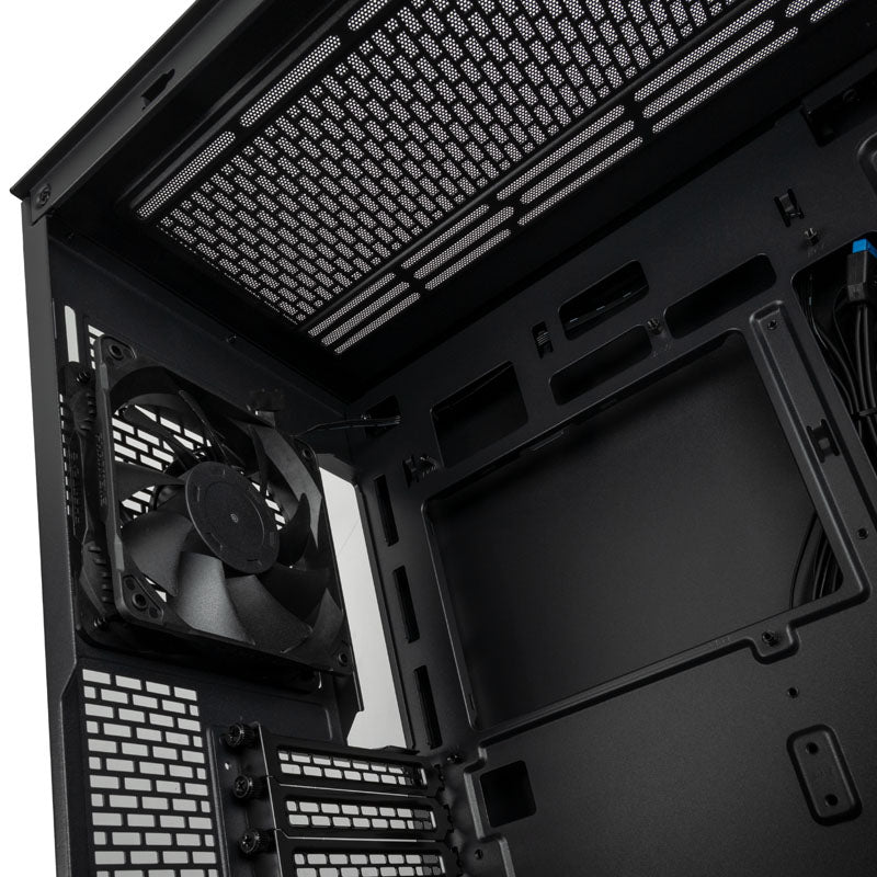 Midi-Tower-Gehäuse, mit Seitenteil aus Tempered Glass, exzellenter Airflow dank feiner Mesh-Front, Platz für Radiatoren bis 360 mm, vorinstallierter 120-mm-Lüfter, Support für Mainboards mit rückseitigen Anschlüssen