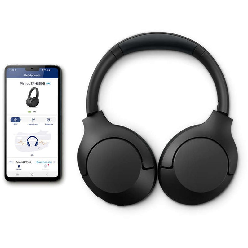 Philips TAH8506BK/00. Produkttyp: Kopfhörer. Übertragungstechnik: Kabellos. Bluetooth. Empfohlene Nutzung: Anrufe/Musik. Kopfhörerfrequenz: 7 - 40000 Hz. Kabellose Reichweite: 10 m. Gewicht: 279 g. Produktfarbe: Schwarz
