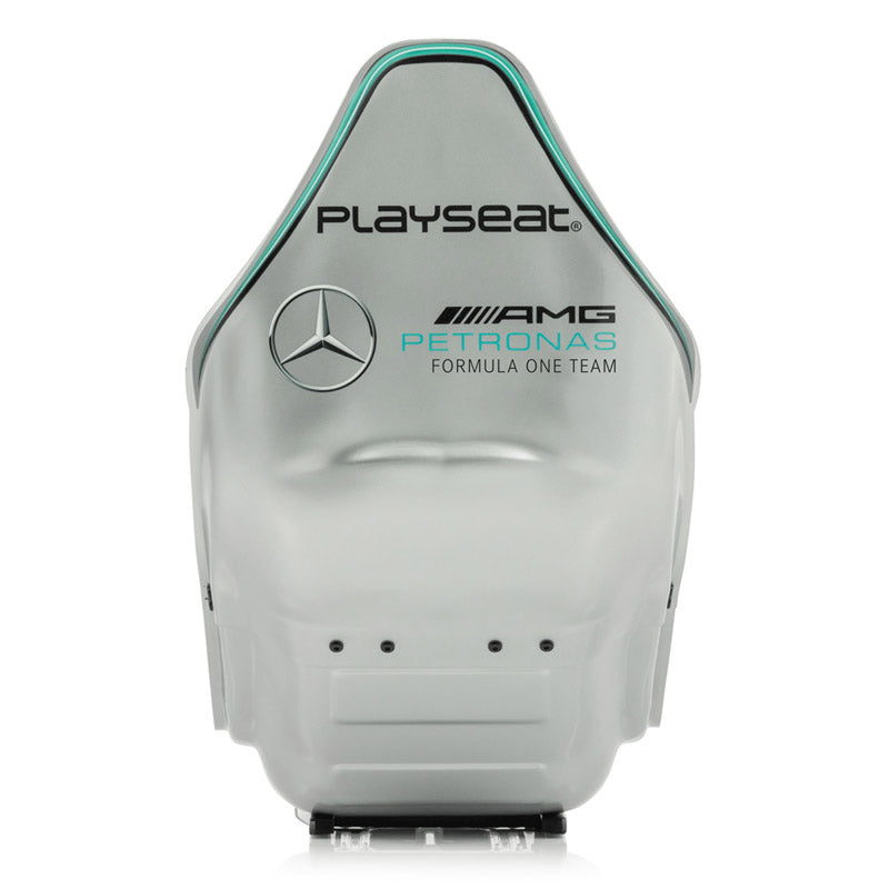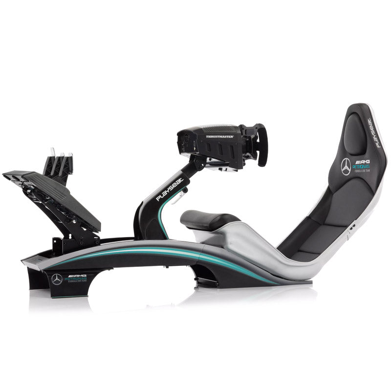 Racing-Stuhl im Formel-1-Stil mit Mercedes AMG Petronas Branding, Schalensitz mit Polsterung und Kunstleder, robuster Rahmen, Halterungen für Lenkrad und Pedale, für Körpergrößen von 120 bis 220 cm, geeignet für Köpergewicht bis 120 kg