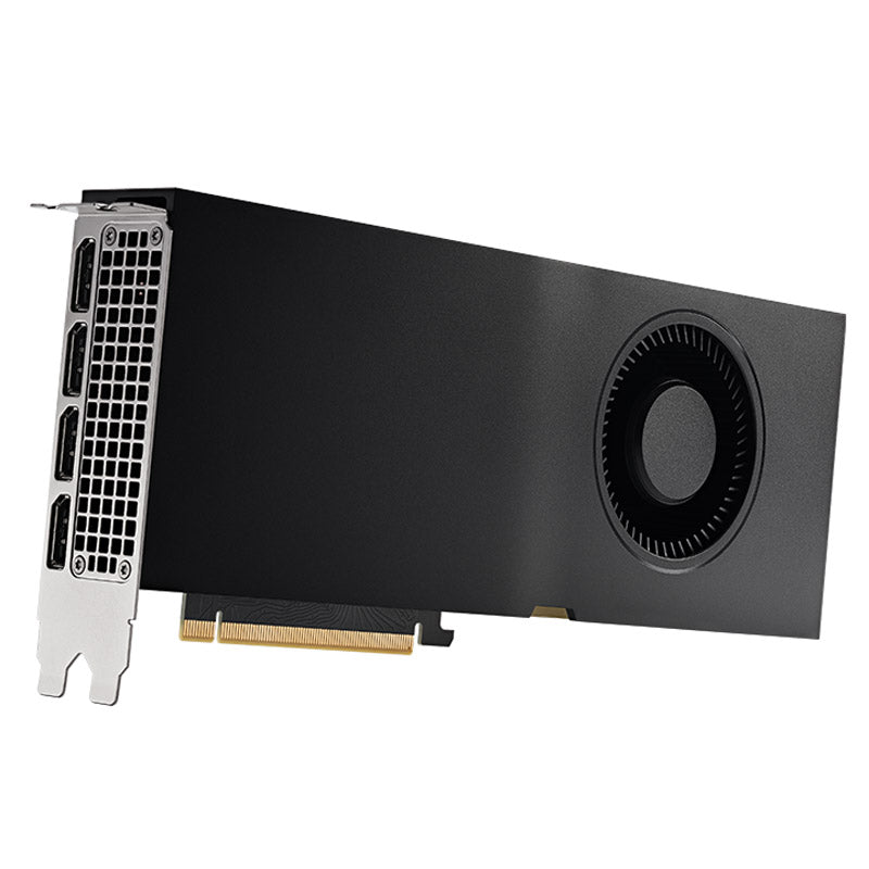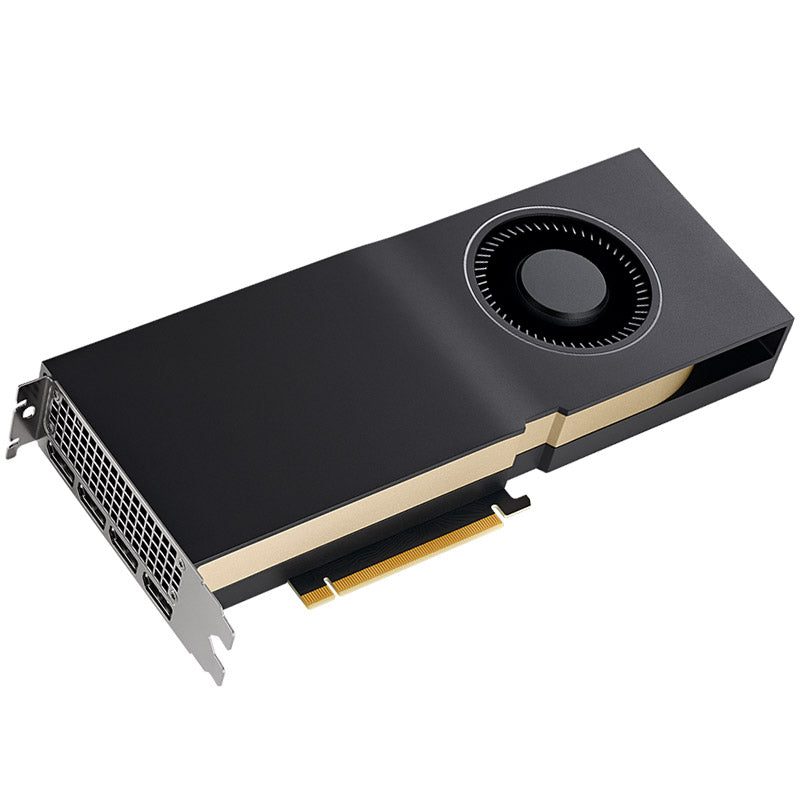 2 Slot hohe Workstation-Grafikkarte, GA102-Grafikchip, 24 GB GDDR6-ECC-Speicher, dezidierter H.264/HEVC-Encoder, 4x DisplayPort für bis zu vier hochauflösende Bildschirme