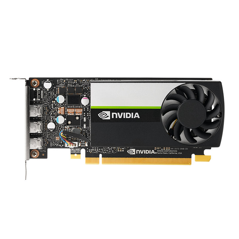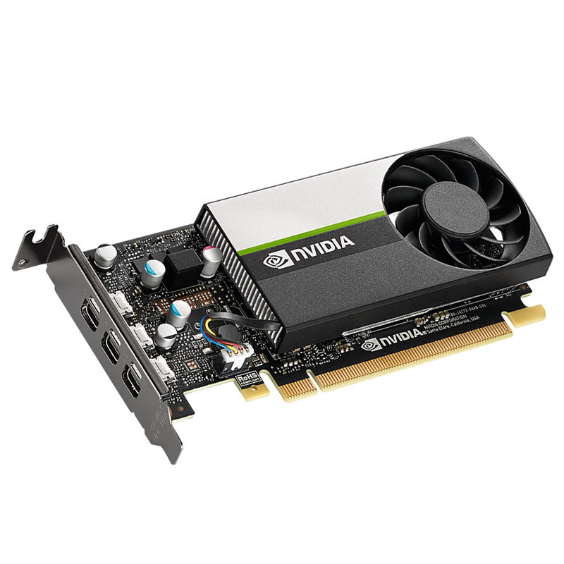 1-Slot hohe Workstation-Grafikkarte von NVIDIA, mit 4.096 MB GDDR6-Speicher, 64-Bit-Interface, 3x Mini-DisplayPort, Low-Profile-Bracket inklusive