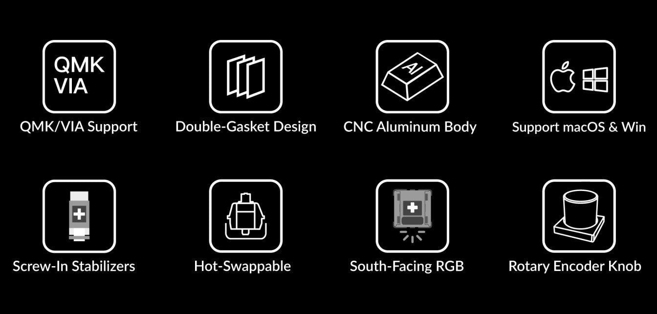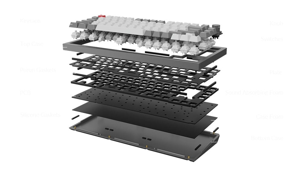 Ein weiteres herausragendes Merkmal der Q1 ist die Hot-Swap fähige Platine, die sowohl mit 3-poligen als auch mit 5-poligen mechanischen MX-Schaltern kompatibel ist. Ausgestattet mit hochwertigen Schraubstabilisatoren, sorgt die Tastatur für Stabilität und ein geschmeidiges Schreibgefühl. Das innovative Schraubdesign ermöglicht zudem die Verwendung einer Vielzahl anderer Stabilisatoren, sodass Sie Ihre Tastatur noch individueller gestalten können.