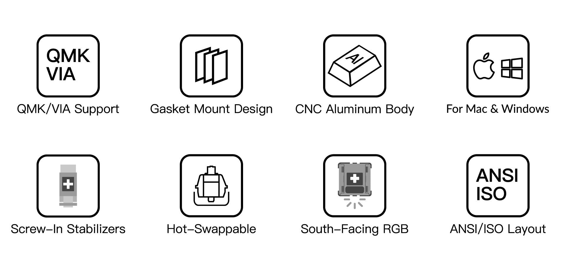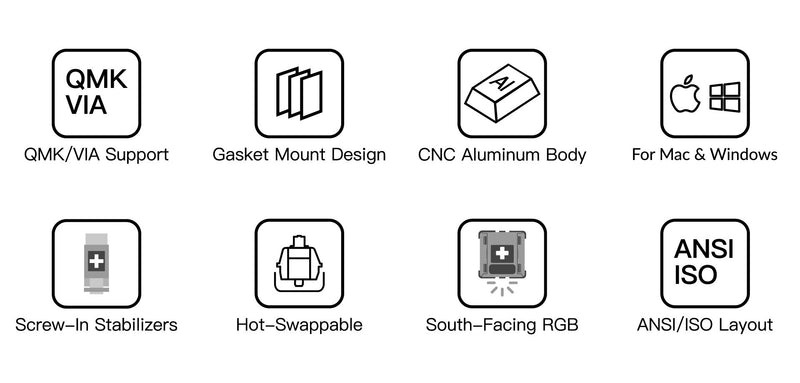 Die Hot-Swap-fähige Platine der Q2 unterstützt sowohl 3-polige als auch 5-polige mechanische MX-Schalter und ist mit hochwertigen Schraubstabilisatoren ausgestattet, die für Stabilität und eine sanfte Benutzererfahrung sorgen. Das innovative Schraubdesign ermöglicht zudem die Kompatibilität mit einer Vielzahl anderer Stabilisatoren.