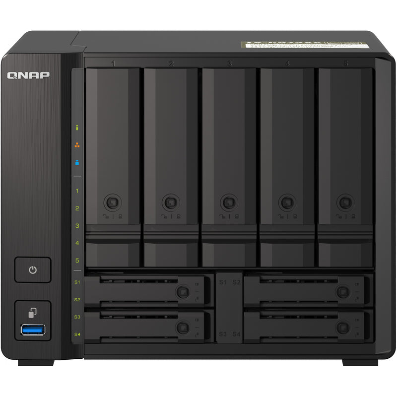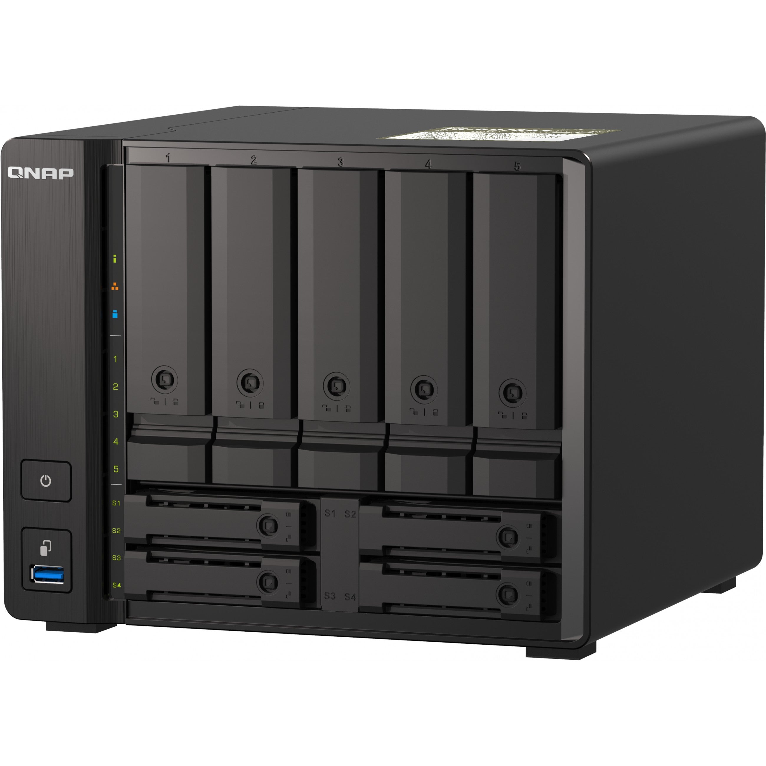 QNAP 9-bay NAS AMD Ryzen V1500B 32GB DDR4 SODIMM 5x6.35cm 2.5Zoll/8.89cm 3.5Zoll SATA 6Gbps + 2x6.35cm 2.5Zoll U.2 NVMe PCIe Gen3 x4