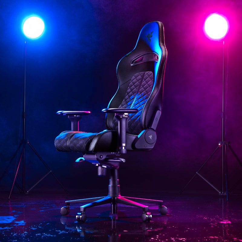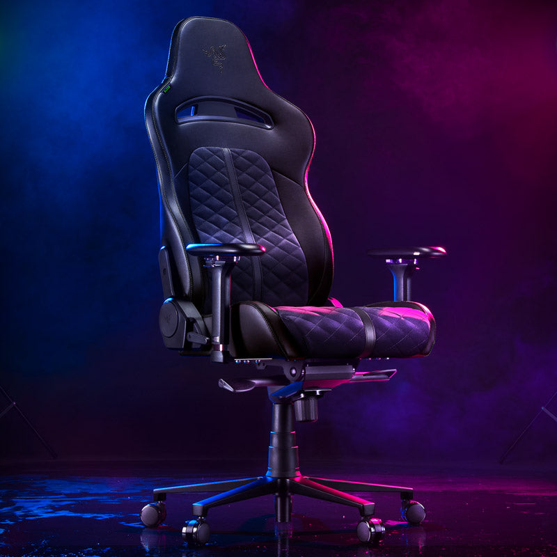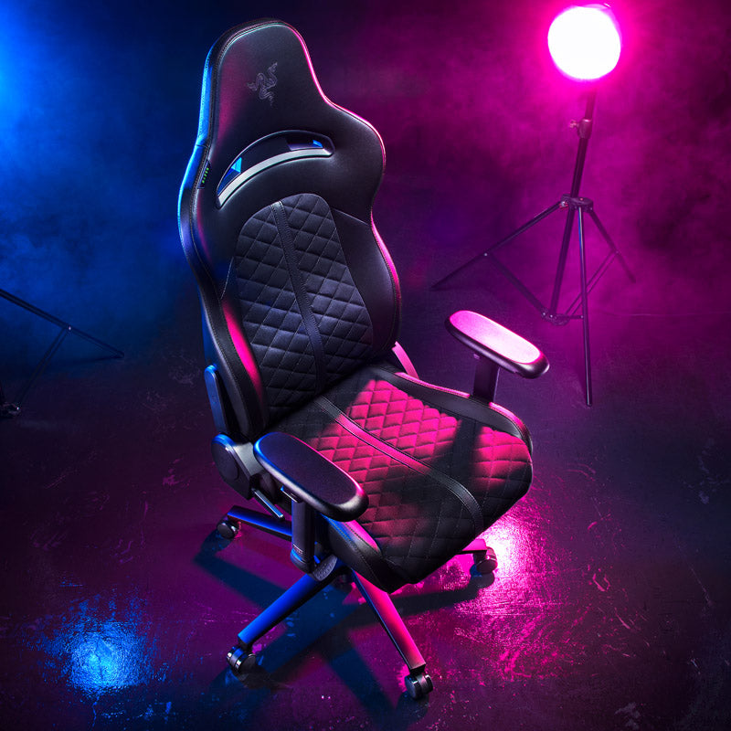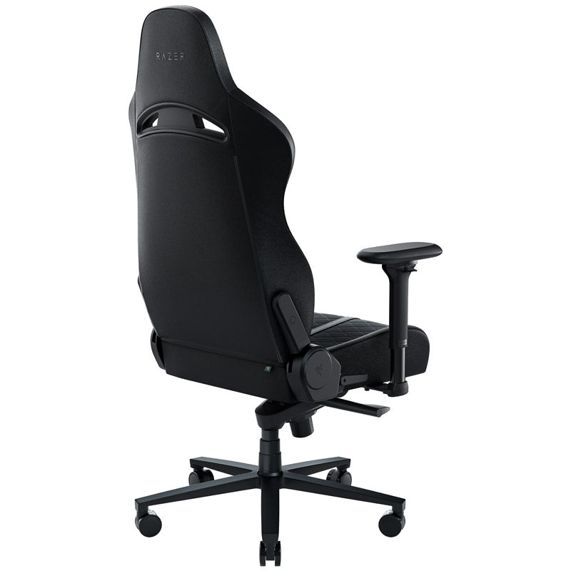 Bequemer Gaming Stuhl in Schwarz, ausgelegt für tägliche Nutzung, Bezug aus Stoff & Kunstleder, integrierte Rückenstütze, 4D-Armlehnen, Maximalbelastung bis zu 136 kg