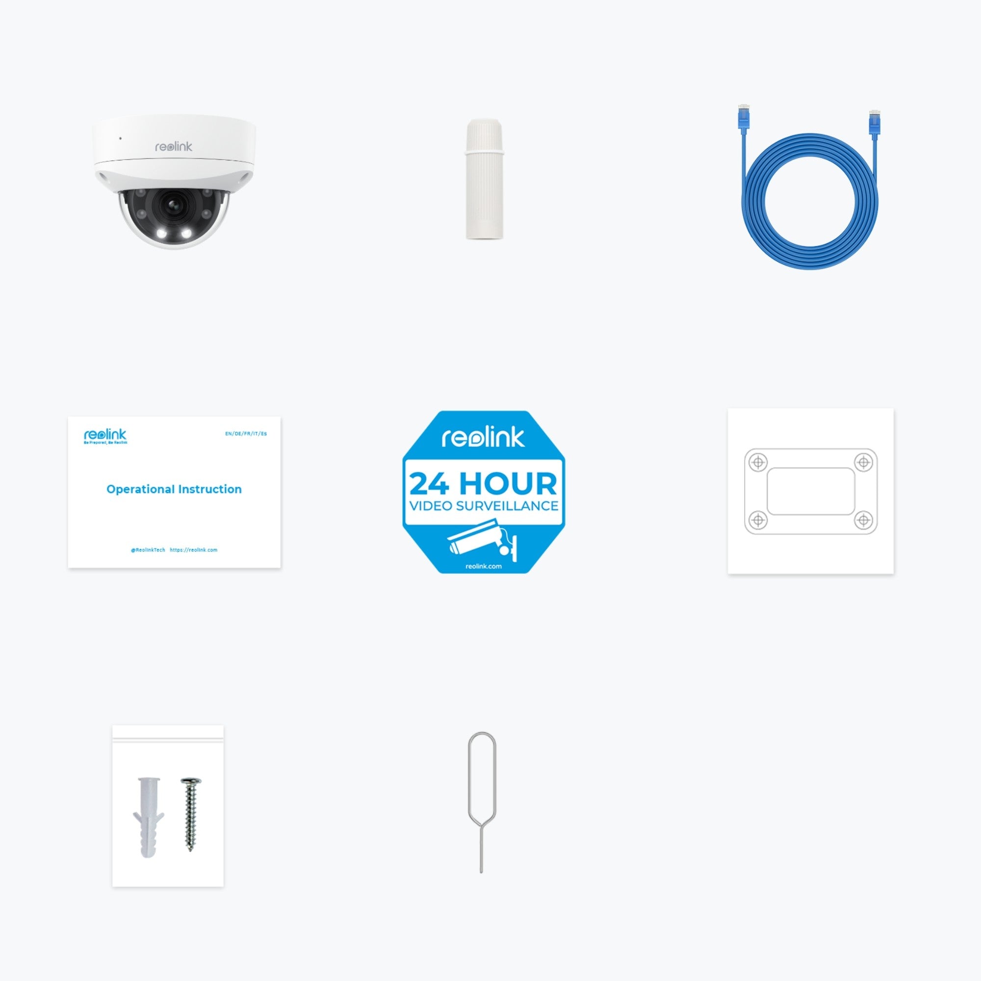 Reolink P437. Typ: IP-Sicherheitskamera. Unterstützte Positionierung: Innen & Außen. Übertragungstechnik: Kabelgebunden. Befestigungstyp: Zimmerdecke. Produktfarbe: Weiß. Formfaktor: Dome. Betrachtungswinkel (horizontal): 31 - 100°. Betrachtungswinkel (vertikal): 17 - 55°. Betrachtungswinkel des Objektivs. diagonal: 39 - 123°. Sensor-Typ: CMOS. Größe des Bildsensors: 25.4 / 2.8 mm (1 / 2.8"). Optischer Zoom: 5x. Brennweitenbereich: 2.7 - 13.5 mm