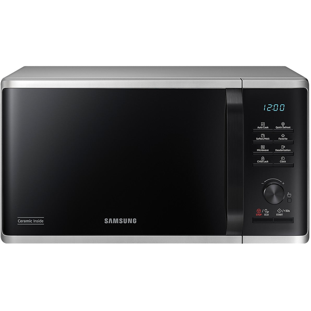 Samsung MS23B3515AS. Geräteplatzierung: Arbeitsplatte. Produkttyp: Solo-Mikrowelle. Innenkapazität: 23 l. Mikrowelle Energie: 1150 W. Eingebautes Display. Display-Typ: LED. Steuerung: Tasten. Drehregler. Produktfarbe: Schwarz. Grau