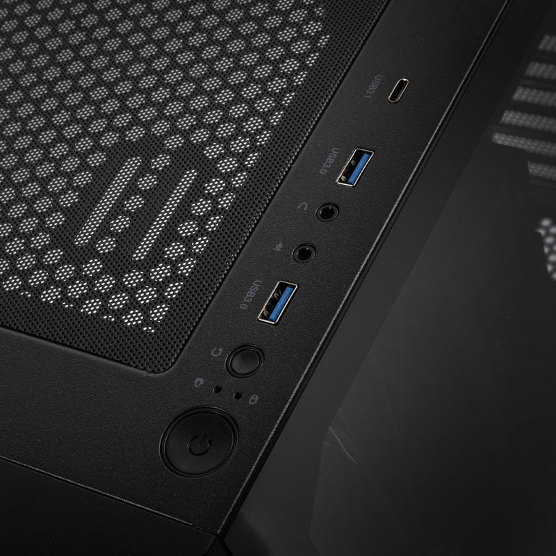 Temperglass-Gehäuse mit 750-Watt-Netzteil, Platz für bis zu 8 Lüfter, Radiatoren bis 360 mm, I/O-Panel mit 1x USB 3.1 Typ C und 2x USB 3.0 Typ A, für ATX-Mainboards, bis zu vier Laufwerke