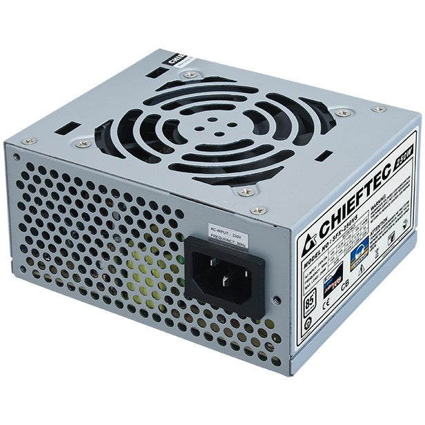 Chieftec SFX-250VS. Gesamtleistung: 250 W. AC Eingangsspannung: 230 V. AC Eingangsfrequenz: 50 Hz. Motherboard Anschlussstecker: 20+4 pin ATX. Kabeltyp: Nicht-modular. Zweck: PC. Stromversorgungseinheit (PSU) Formfaktor: SFX. Produktfarbe: Silber. Lüfterdurchmesser: 8 cm. Anzahl Lüfter: 1 Lüfter. Zertifizierung: UVP| OVP| SCP| OPP| AFC|