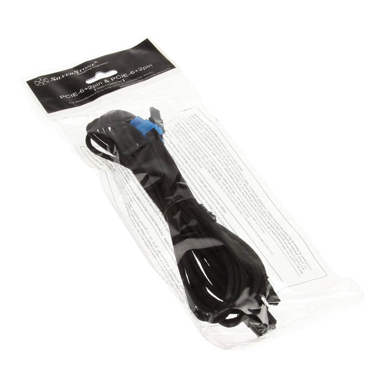 55 cm langes, schwarzes 2x-6+2-Pin-PCIe-Kabel für modulare SilverStone-PSUs - einzeln gesleevte Stränge