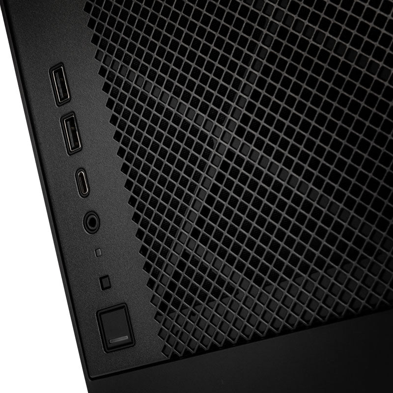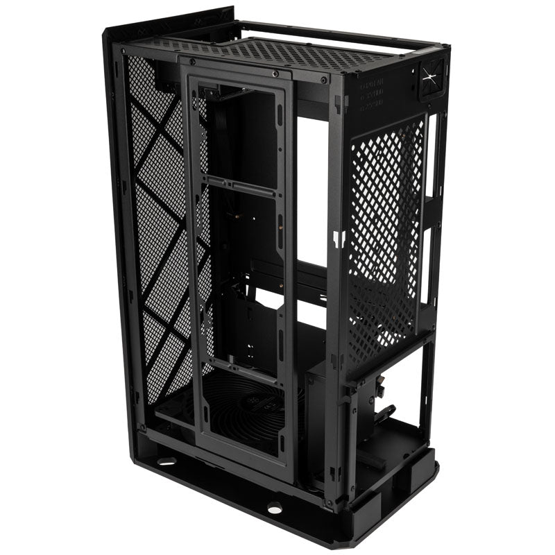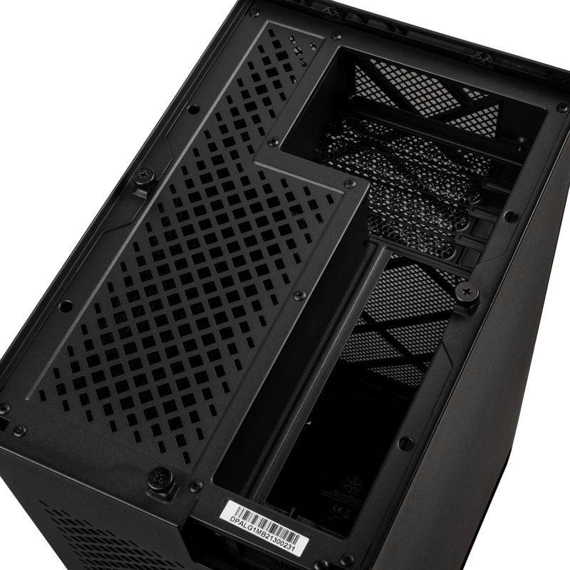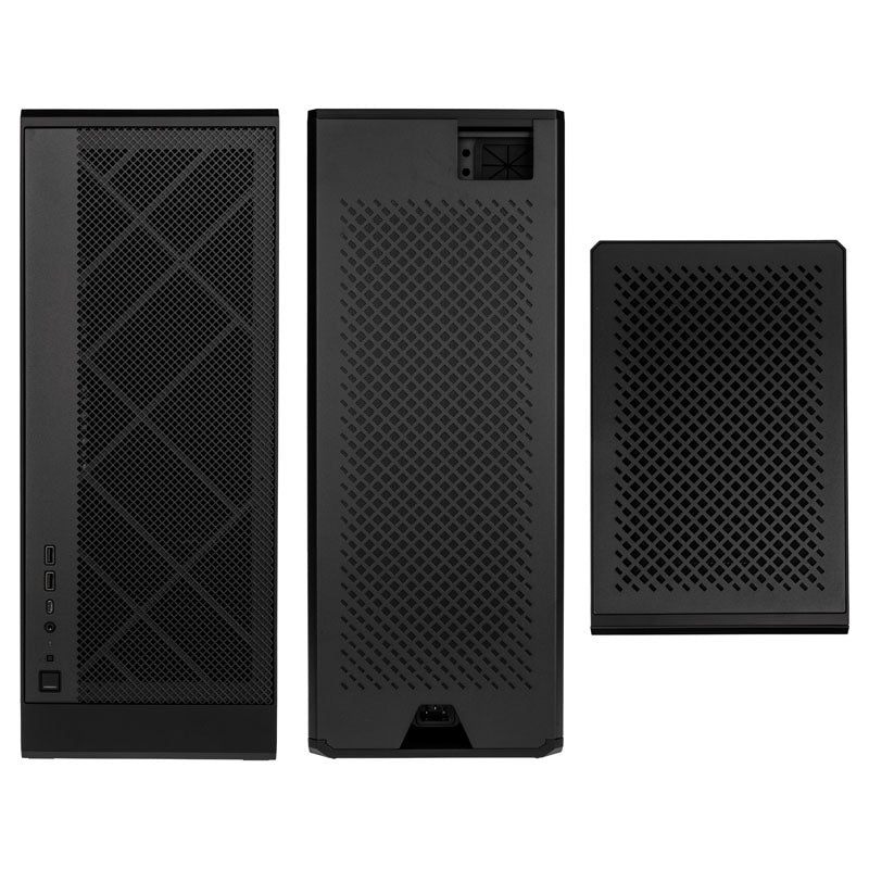 Schlankes Micro-ATX-Gehäuse mit Kamineffekt, mit luftdurchlässiger Mesh-Front, vertikaler Einbau von Grafikkarten bis 360 mm, vorinstallierter 180-mm-Lüfter am Boden, für SFX-Netzteile, 4x 3,5 und 4x 2,5 Zoll möglich