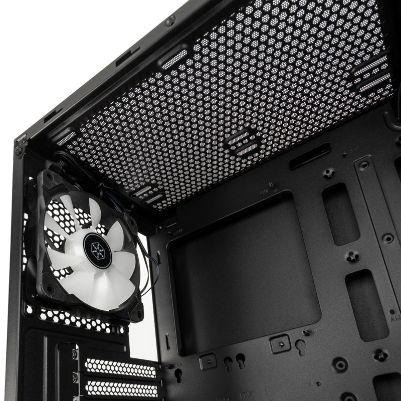 Funktionales Gaming-Gehäuse von SilverStone, für Mini-ITX/Micro-ATX/ATX-Mainboards, inklusive Netzteilschacht, zwei 120-mm-RGB-LED-Lüfter, Seitenteil aus Temperglas, Platz für zwei 240er Radiatoren