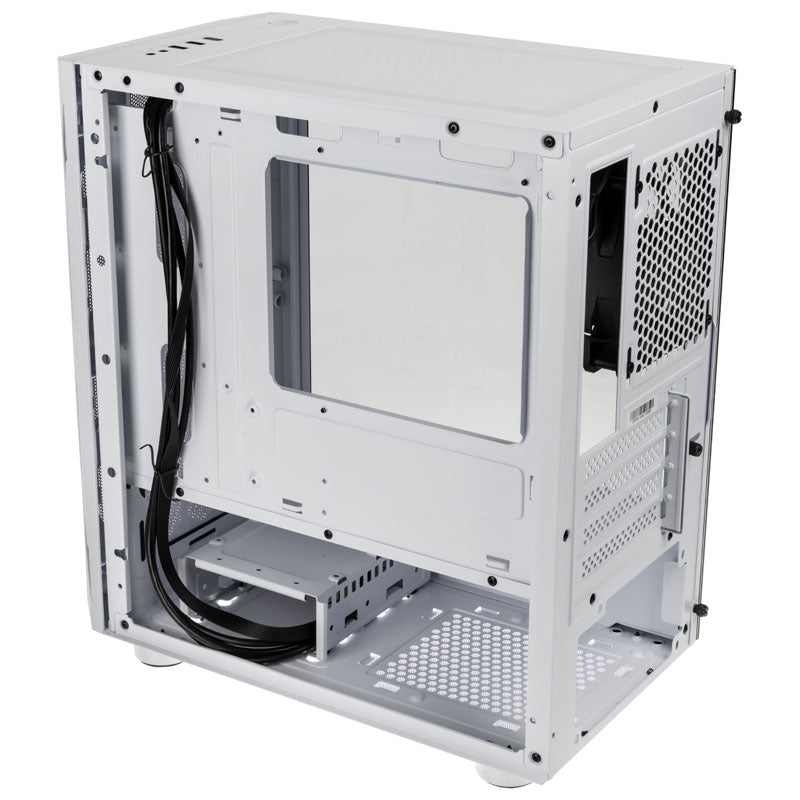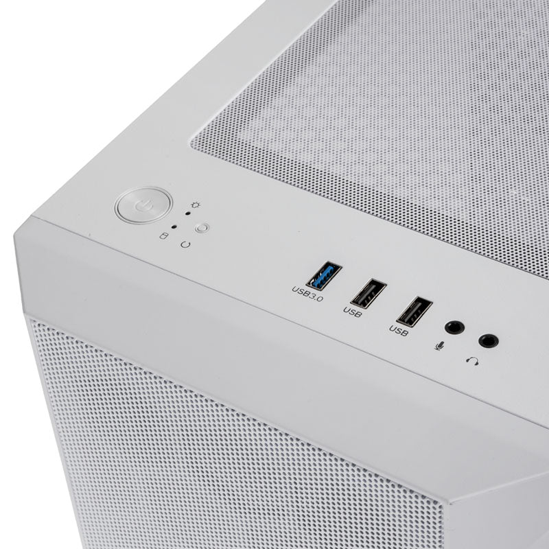 Stilvolles Micro-ATX-Gehäuse mit gutem Airflow, mit luftdurchlässiger Mesh-Front, großes Seitenteil aus Temperglas, ein vorinstallierter 120-mm-Lüfter, Grafikkarten bis 320 mm und CPU-Kühler bis 160 mm, 2x 3,5 und 2x 2,5 Zoll, Front I/O mit 1x USB 3.0 und 2x USB 2.0