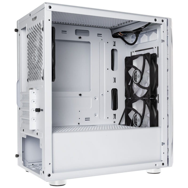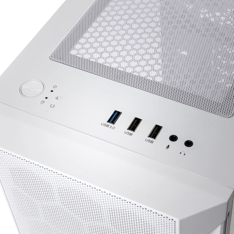 Mini-Tower in Weiß, 3x ARGB-Lüfter vorinstalliert, bietet Mesh-Front, Radiatoren bis zu 240 mm, Grafikkarten bis 320 mm Länge, 1x USB 3.0 / 2x 2.0, inklusive Netzteilabdeckung