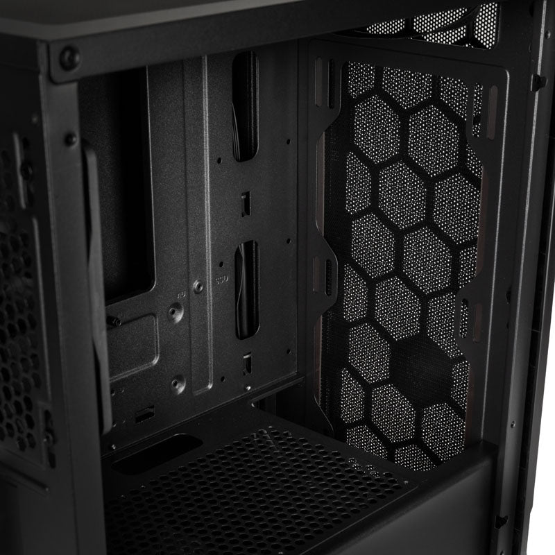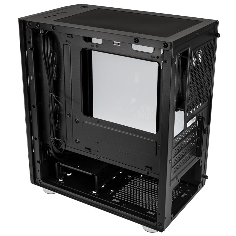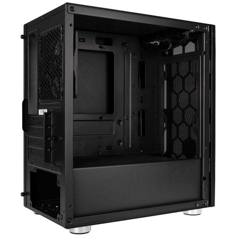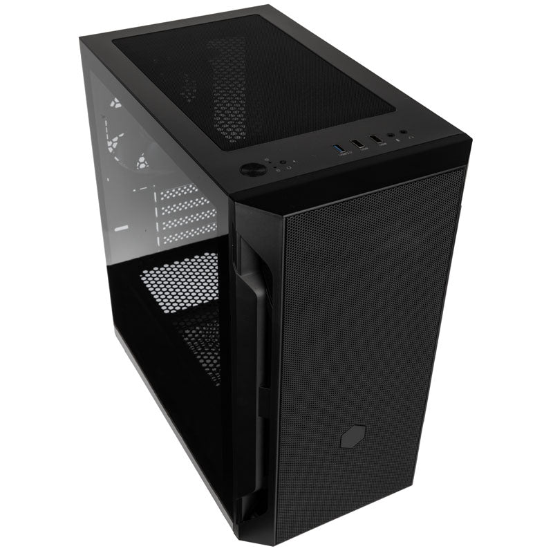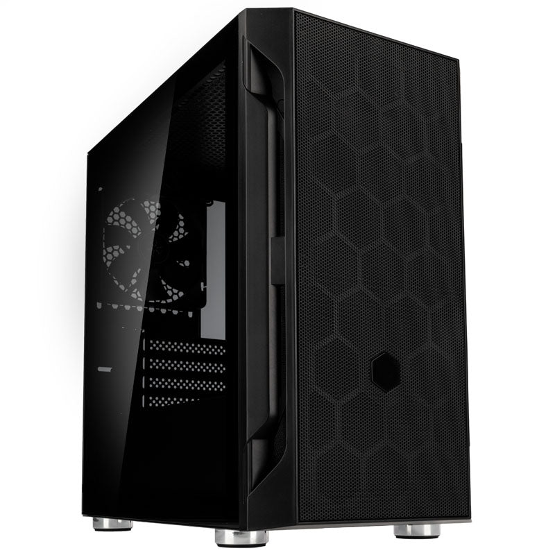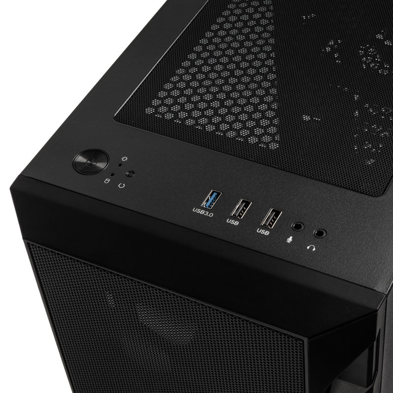 Stilvolles Micro-ATX-Gehäuse mit gutem Airflow, mit luftdurchlässiger Mesh-Front, großes Seitenteil aus Temperglas, Grafikkarten bis 320 mm und CPU-Kühler bis 160 mm, 2x 3,5 und 2x 2,5 Zoll, Front I/O mit 1x USB 3.0 und 2x USB 2.0