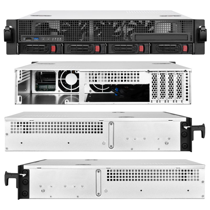 19-Zoll-Server-Gehäuse im 2U-Format, für Mainboards bis Micro-ATX, Front mit 4x Hot-Swap-Slots