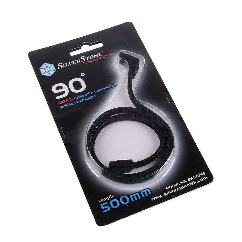 SilverStone SATA III Kabel 50cm gewinkelt / gerade - sleeved black