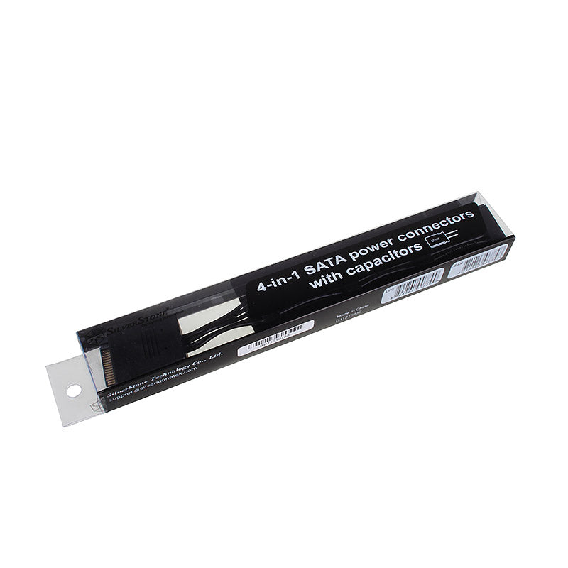 SATA-Stromverteilerkabel von SilverStone mit 4 Ausgängen und Kondensator zur Spannungsstabilisierung
