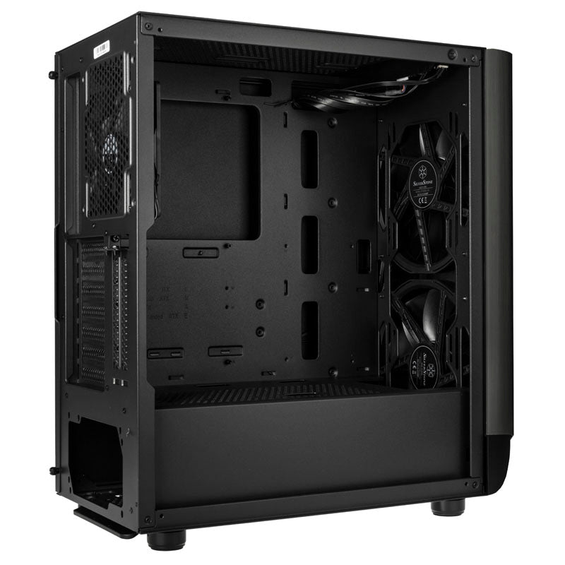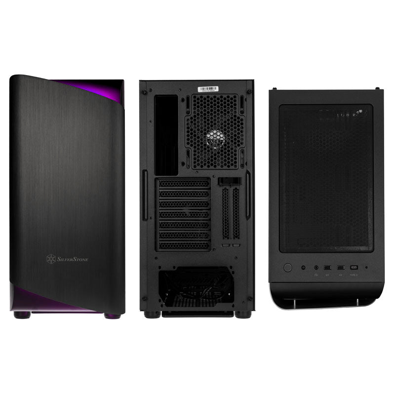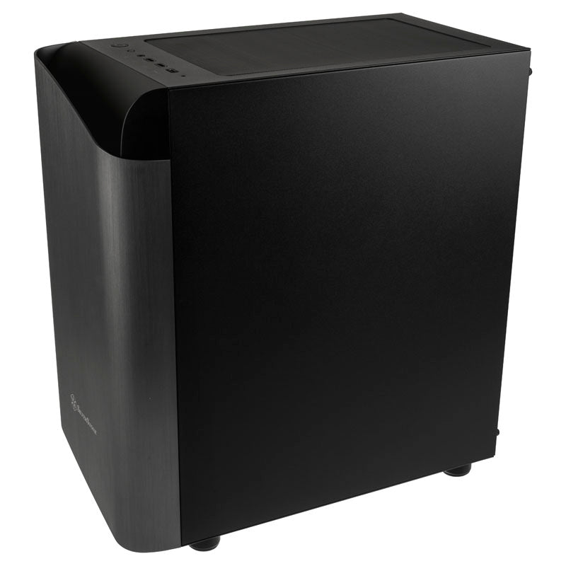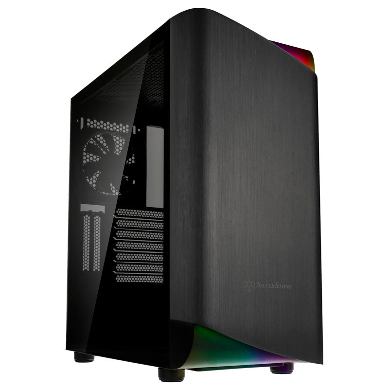 Edles Design-Gehäuse von SilverStone, für Mini-ITX/Micro-ATX/ATX-Mainboards, mit Netzteilschacht, Seitenteil aus Tempered Glass, Platz für zwei 240er Radiatoren, Schwarz