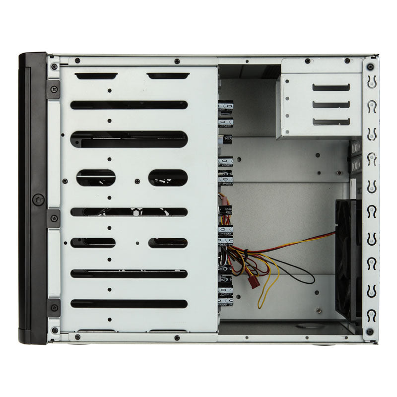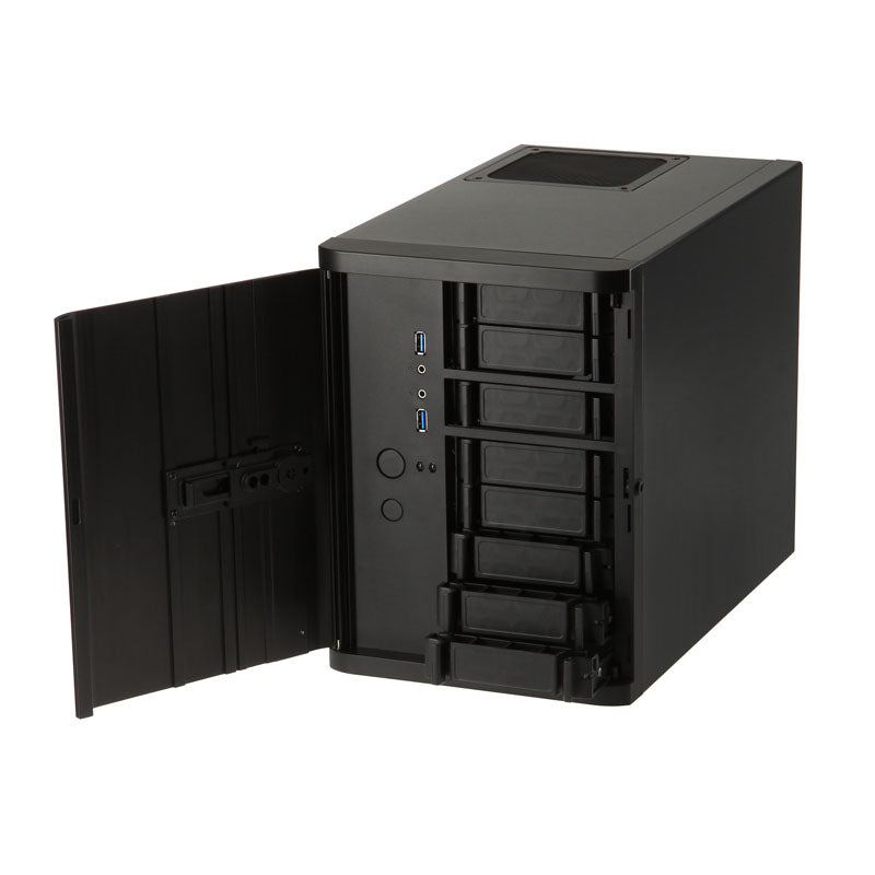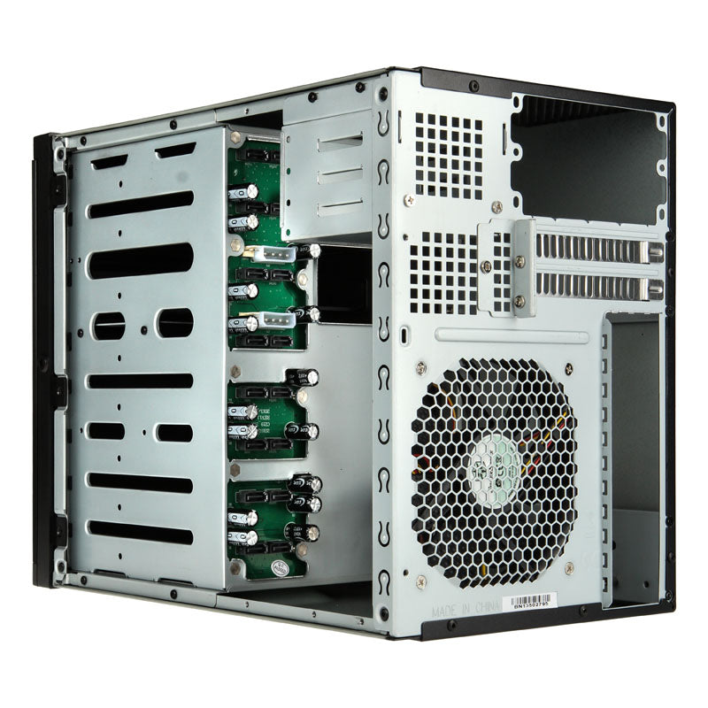 NAS-Gehäuse für Mini-ITX mit 8x Hot-Swap-Laufwerken (3,5"/2,5") & 4x festen 2,5"-Slots (SATA & SAS) & 3x 120er-Lüftern
