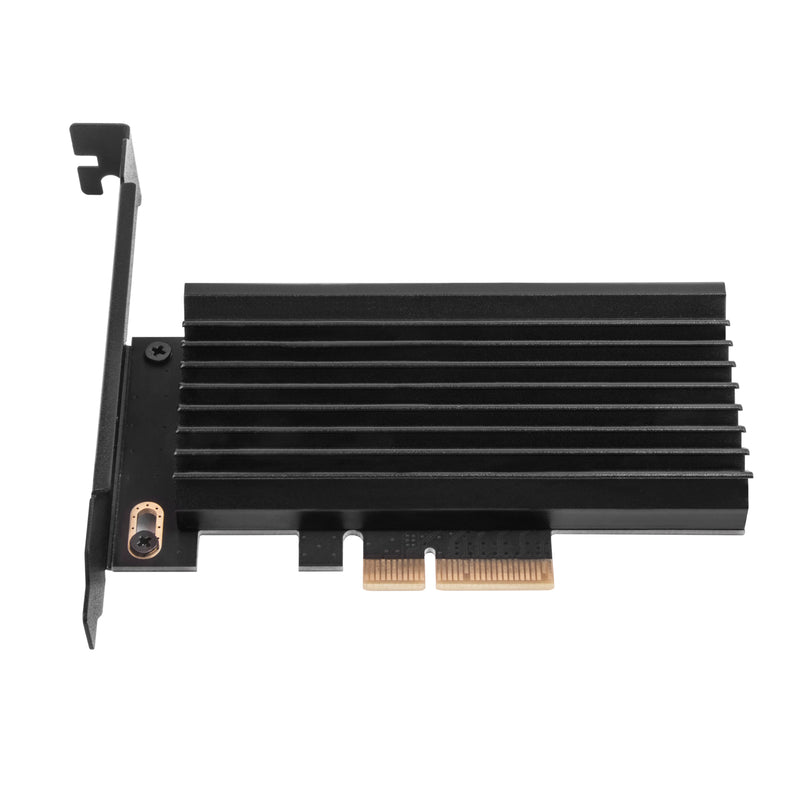 Adapter zum Einsatz von M.2-SSDs auf Mainboards, schnelle Anbindung über vier PCIe-4.0-Lanes, 1x M-Key, Kühlkörper inklusive, mit optionaler Low Profile Blende