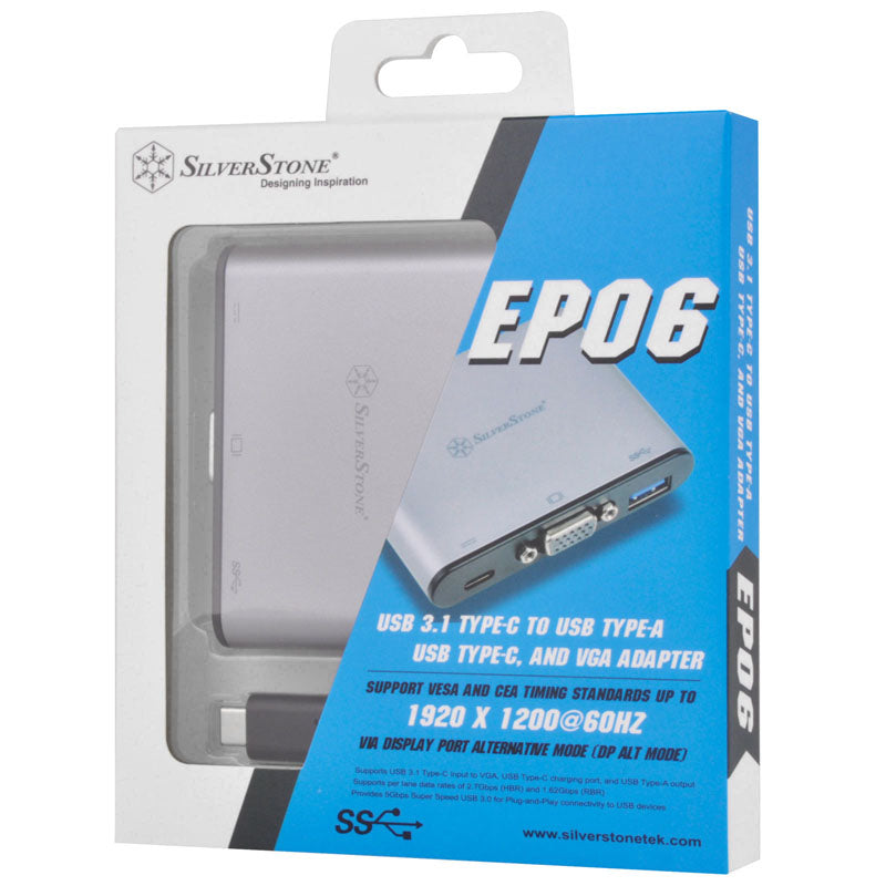 SilverStone SST-EP06C - USB 3.1 Typ-C auf VGA/USB Type C/USB Type A Adapter Hub
