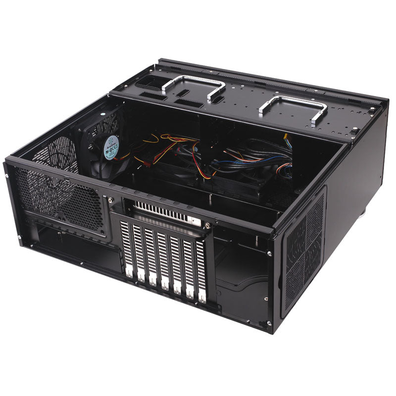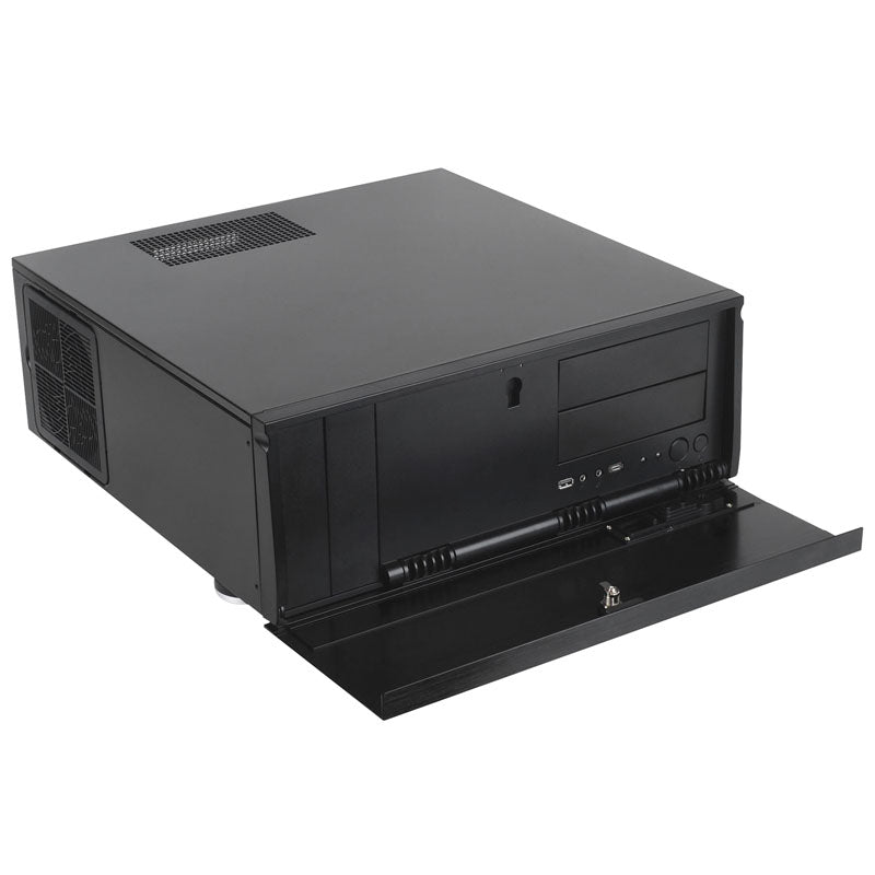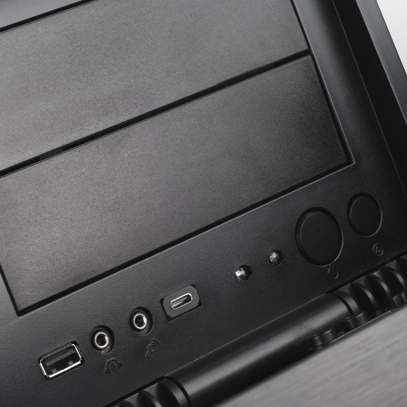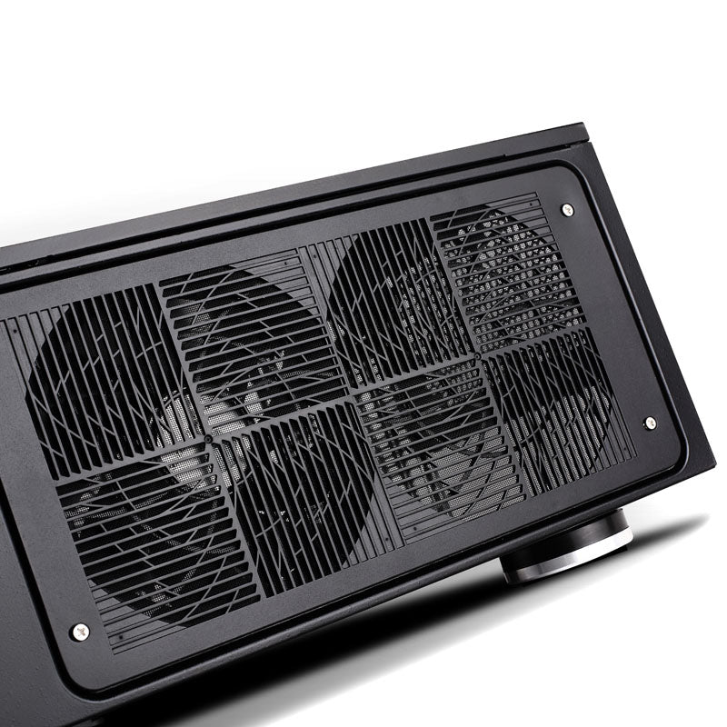 Flexibles Gehäuse mit drei Lüftern, ideal für HTPC-Systeme, mit Kensington-Lock, mit USB-C-Anschluss an Vorderseite, kompatibel mit Mainboards bis E-ATX, schnell zugängliche Staubfilter und großzügige Luftdurchlässe, bis zu elf Laufwerke möglich