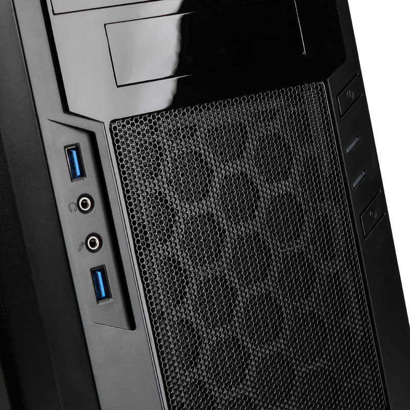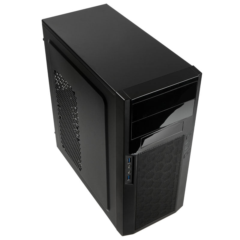 Kompakter schwarzer Midi-Tower von SilverStone mit edler Front in Klavierlack-Optik mit Platz für bis zu 34 cm Grafikkarten, vorinstalliertem Lüfter & 2x USB 3.0 im Frontpanel