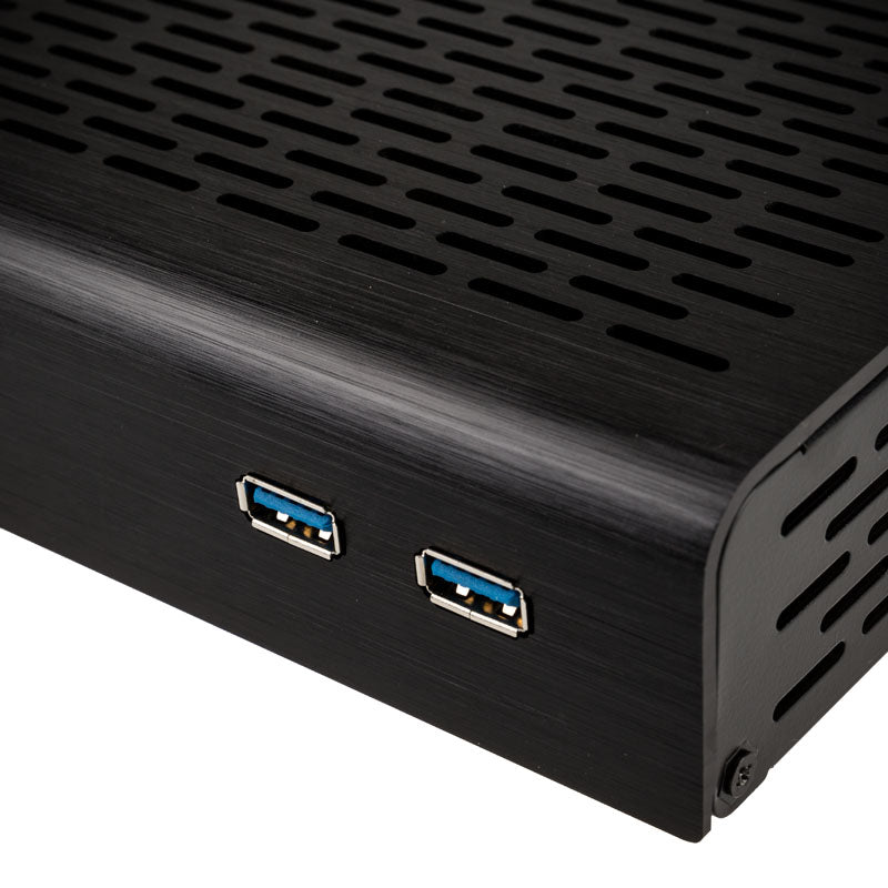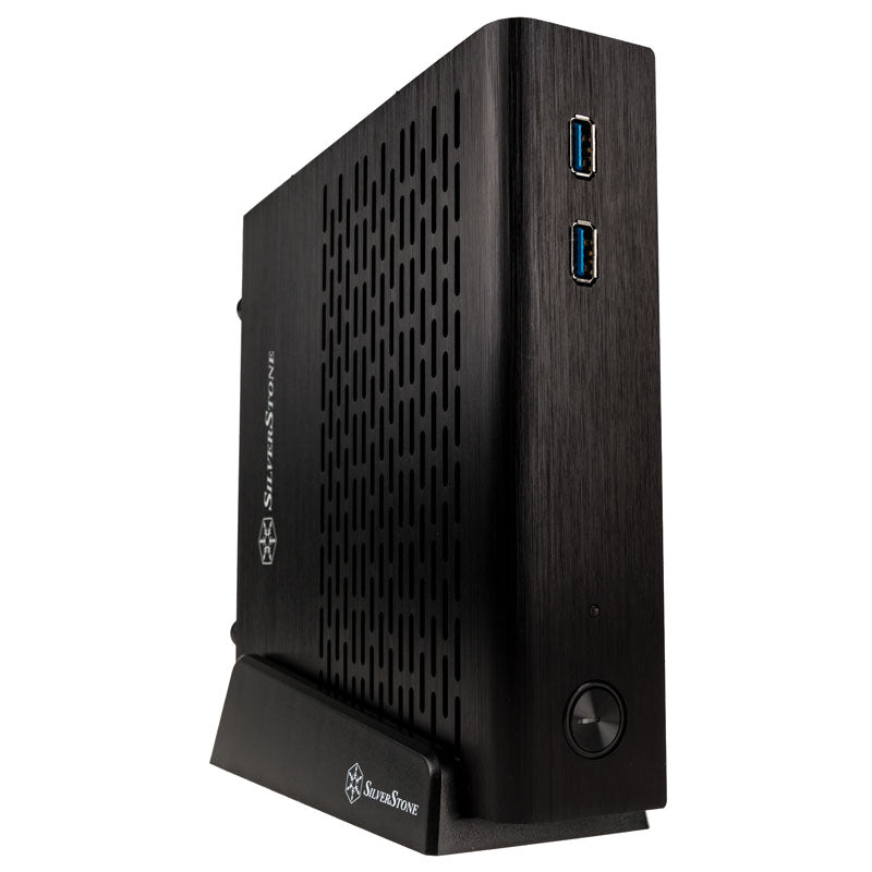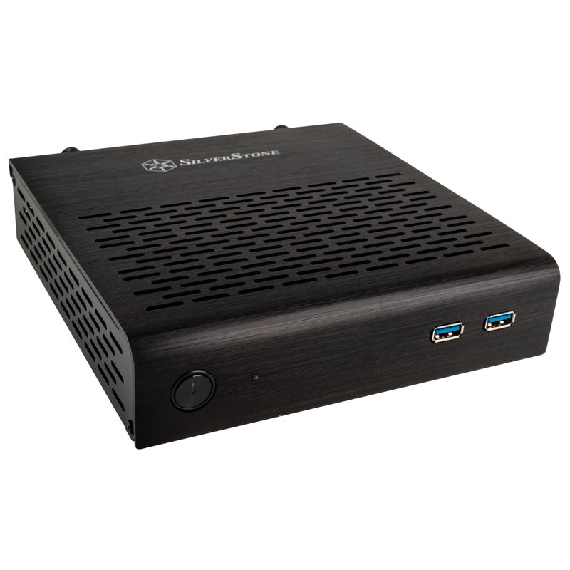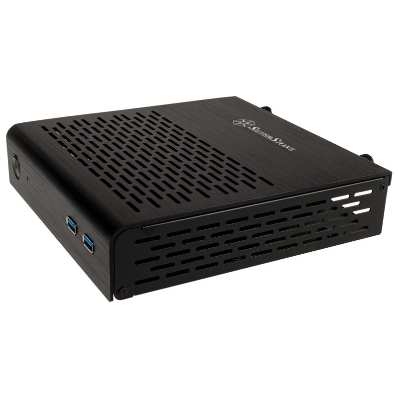 Ultrakompaktes schwarzes SilverStone-Gehäuse für Thin-Mini-ITX-Systeme mit 2,5-Zoll-Option, 2x USB 3.0 & nur knapp 500 g Gewicht