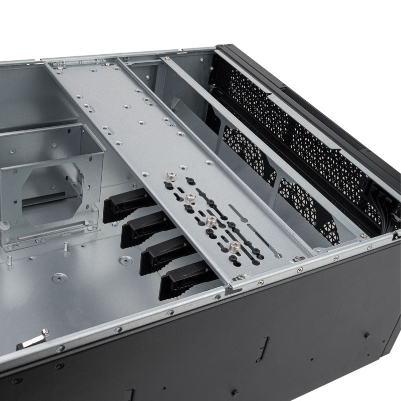 5HE-Servergehäuse, Motherboards bis SSI-EEB, Platz für zwei 360-mm-Radiaoren, Standard-Profile-PCI-x8-Steckplätze, Laufschienen-Montagelöcher zur schnellen Schieneninstallation, 1x USB-Typ-C-Schnittstelle