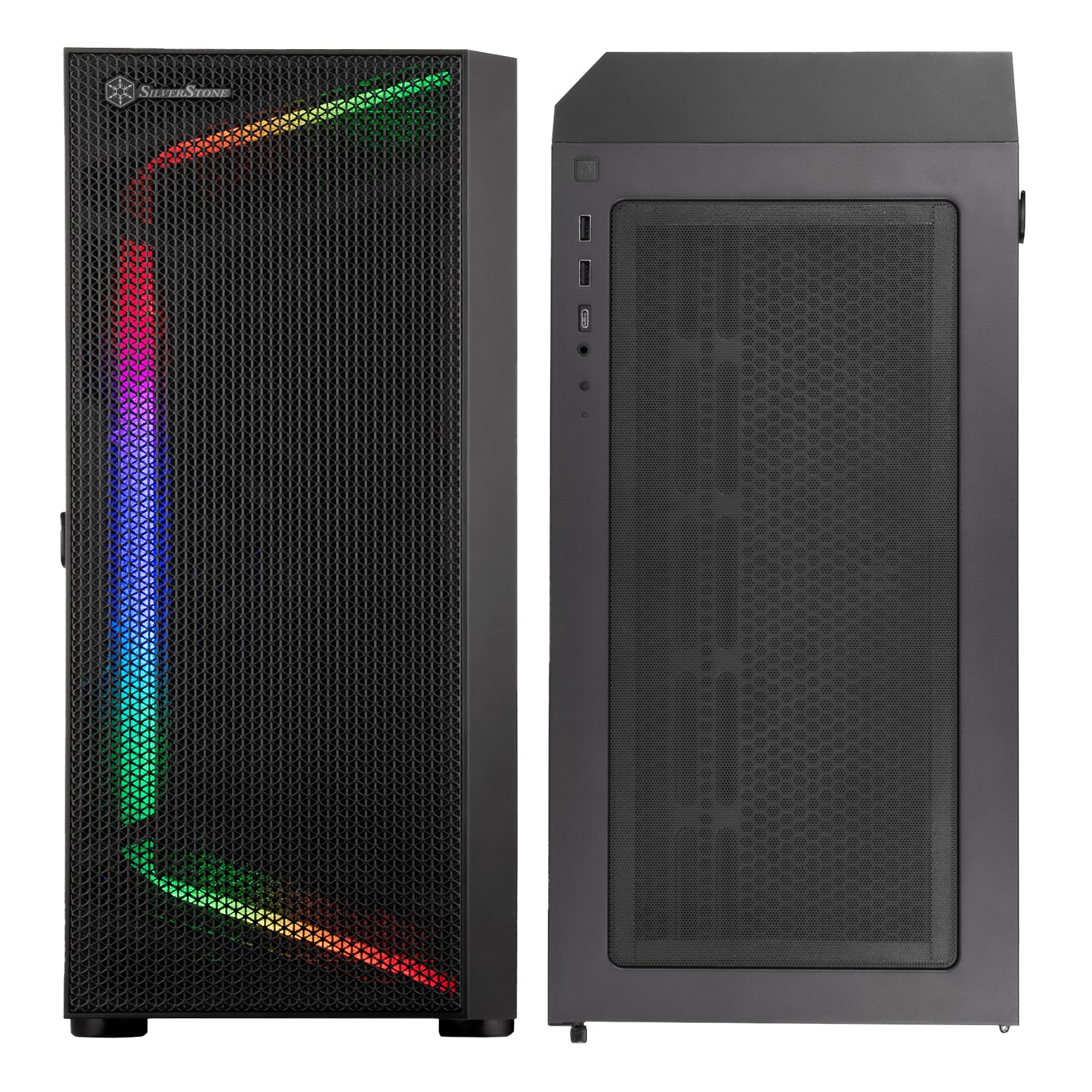 Gaming-Gehäuse von SilverStone für ATX-Mainboards, mit drei vorinstallierten Lüftern, mit RGB-Beleuchtung, große Mesh-Front für ungehinderten Airflow, modernes I/O-Panel mit USB-C, für Radiatoren bis 360 mm geeignet, max. Grafikkartenlänge von 394 mm