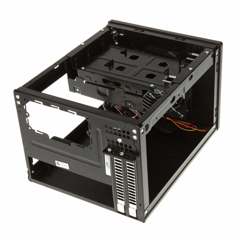 Winziges Mini-ITX-Gehäuse mit USB 3.0, schwarzem Innenraum & Platz für 22,8 cm lange Grafikkarten
