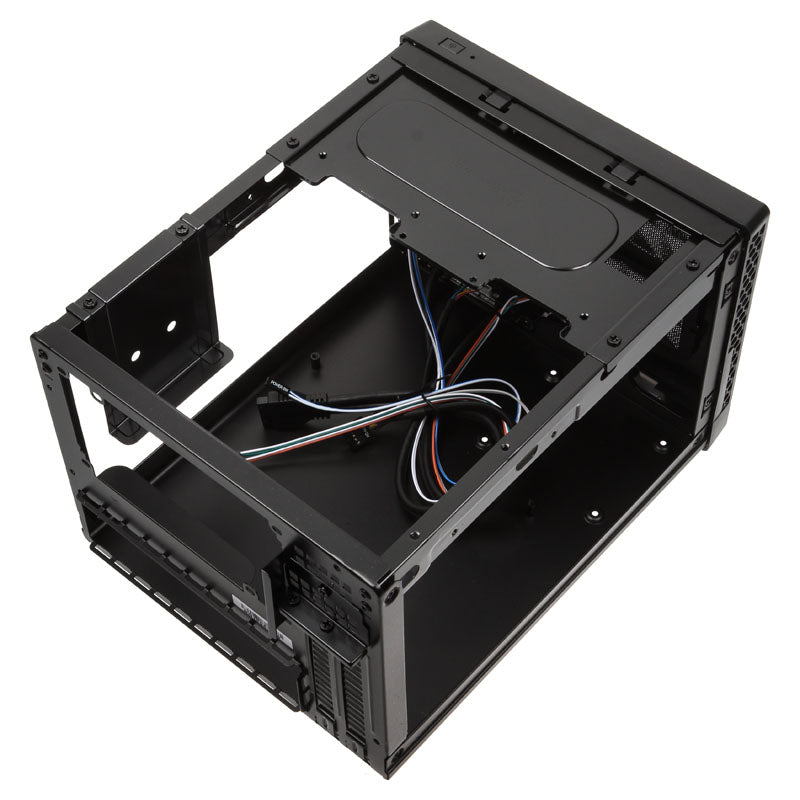 Sehr kompaktes und flexibles schwarzes Mini-ITX-Gehäuse für lange Grafikkarten - mit USB 3.0 und edler Front