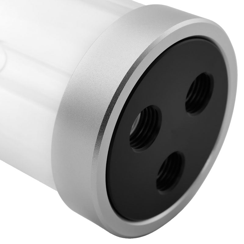 Die transparente Röhre aus hochwertigem Acrylglas sorgt dafür, dass Sie den Flüssigkeitsstand jederzeit genau im Blick haben. Der Behälter wird durch einen Deckel und Boden aus silbernem Acryl sowie schwarzem Acetal perfekt ergänzt, was ihm eine elegante und moderne Optik verleiht. Diese Kombination aus Materialien garantiert nicht nur Langlebigkeit, sondern auch eine ansprechende Gestaltung, die sich harmonisch in jedes System einfügt.