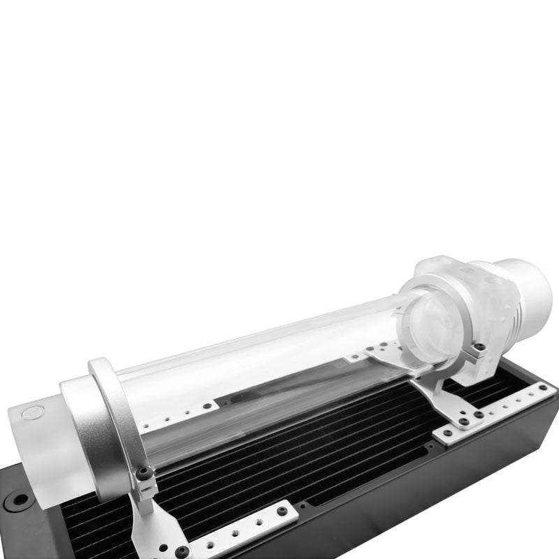 Der Ausgleichsbehälter verfügt über einen Deckel und Boden aus matt transparentem und silbernem Acryl, die zusammen eine stilvolle und moderne Optik erzeugen. Die Kombination aus mattem und transparentem Design sorgt dafür, dass Ihr Flüssigkeitssystem sowohl gut sichtbar als auch elegant präsentiert wird.