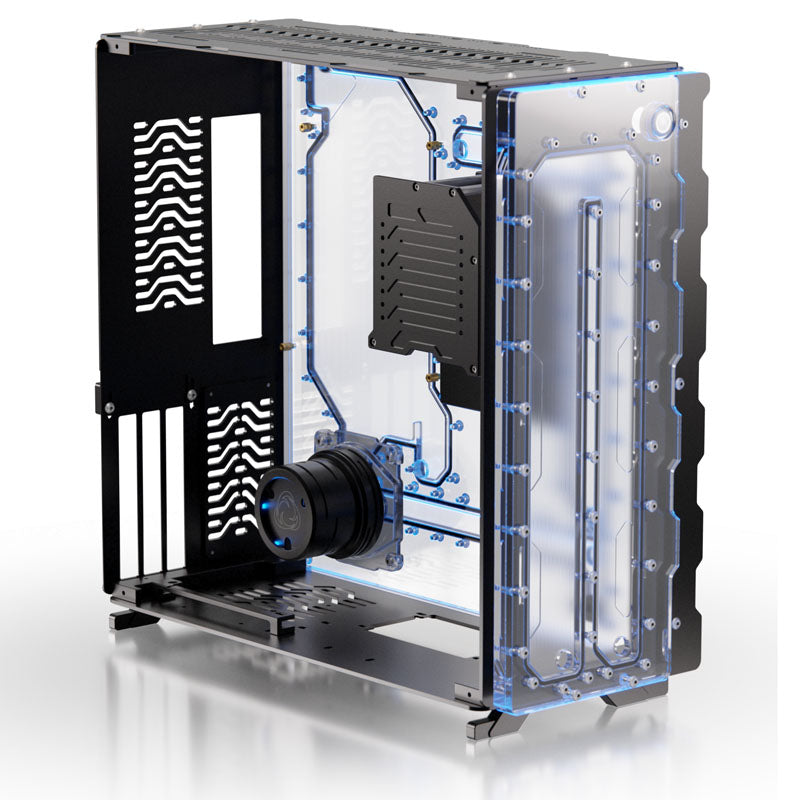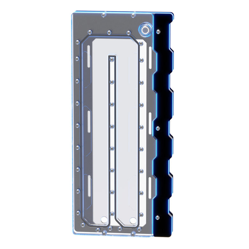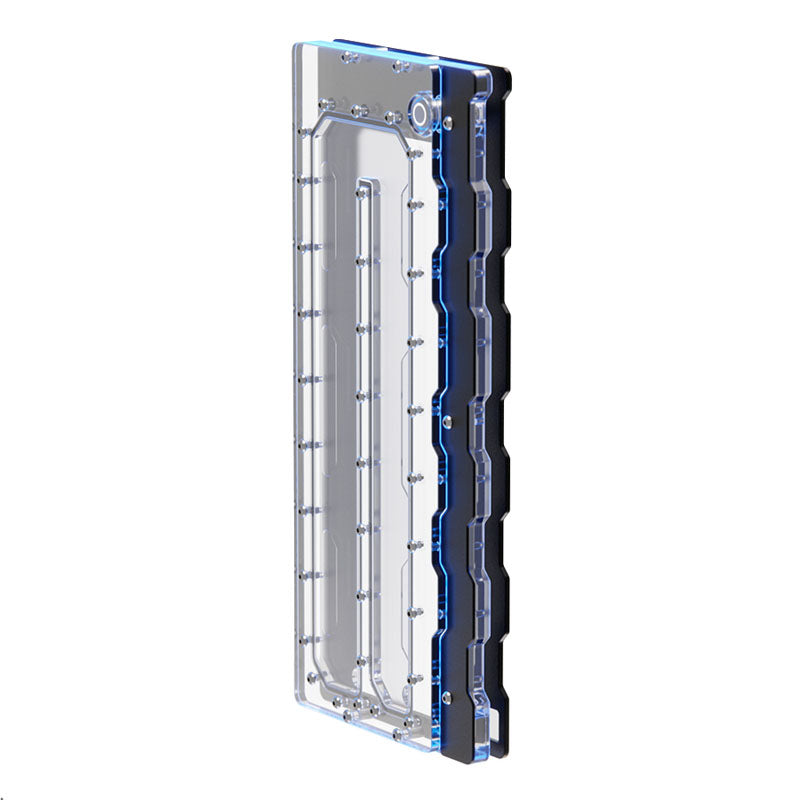 Hergestellt aus robustem, transparentem Acrylglas und mit schwarz eloxiertem Aluminium kombiniert, vereint dieses Produkt Funktionalität mit ästhetischem Reiz. Der durchdachte Aufbau ermöglicht eine effiziente Verteilung des Kühlmittels und sorgt so für eine optimale Kühlung Ihrer Komponenten.