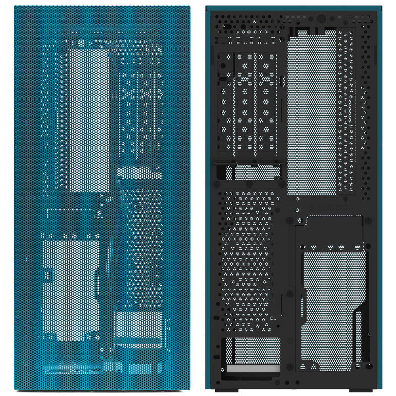 Kompaktes Mini-ITX-Gehäuse, mit Außenflächen aus Mesh, ATX-Mainboard möglich bei vertikaler GPU, Platz für 280-mm-Radiator, bis zu 5 Lüfter möglich, 2x USB 3.0 Typ A / 1x USB 3.1 Typ C