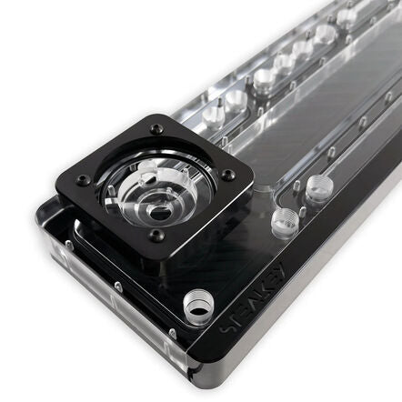 Entdecken Sie das Stealkey Customs SK-UNI 360D Distroplate D-RGB Black Edition – das ultimative Upgrade für Ihr PC-Wasserkühlsystem. Dieses Distroplate ist nicht nur funktional, sondern setzt auch neue Maßstäbe in Sachen Ästhetik und Farbvielfalt. Mit einer ansprechenden schwarzen Oberfläche fügt es sich perfekt in jede Systemkonfiguration ein und sorgt gleichzeitig für beeindruckende Lichtspiele durch die D-RGB-Beleuchtung.