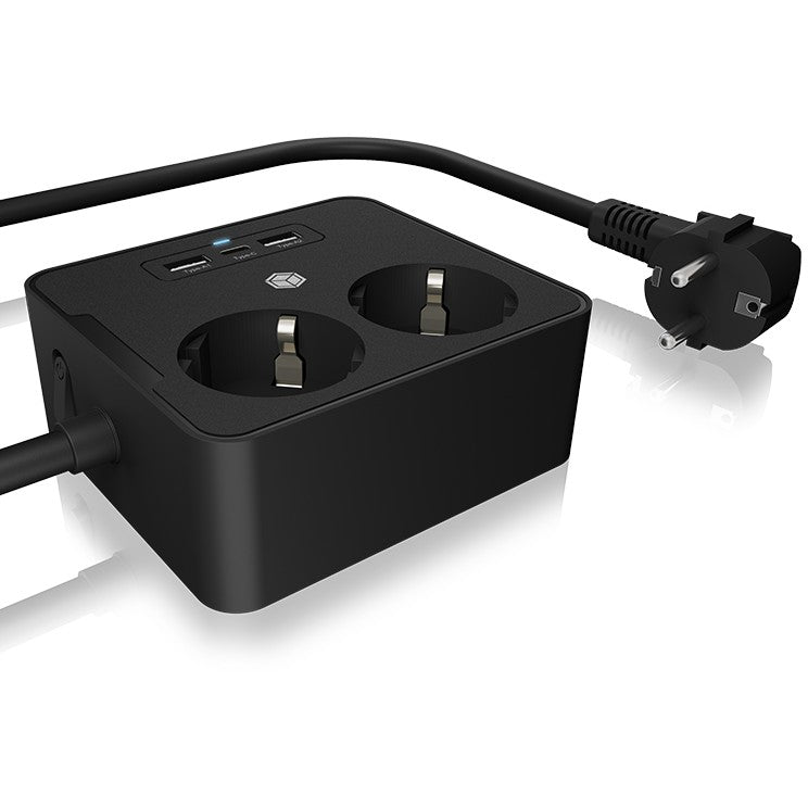 Steckdosenleiste Doppelsteckdose + 2x USB-Port ICY BOX Black