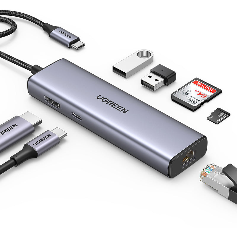 UGREEN USB-C to 2*USB3.0+HDMI+RJ 45+SD&TF +PD port Hub