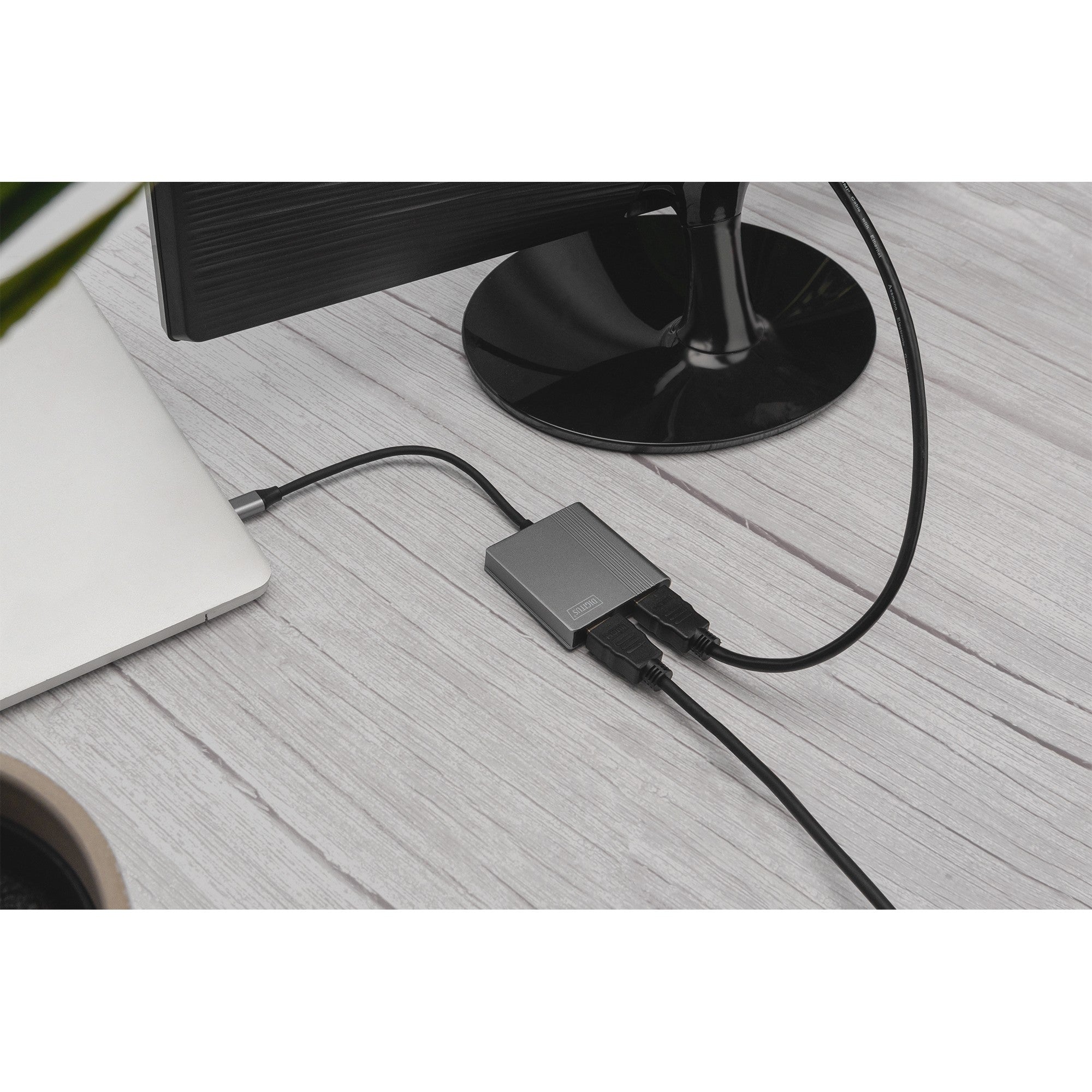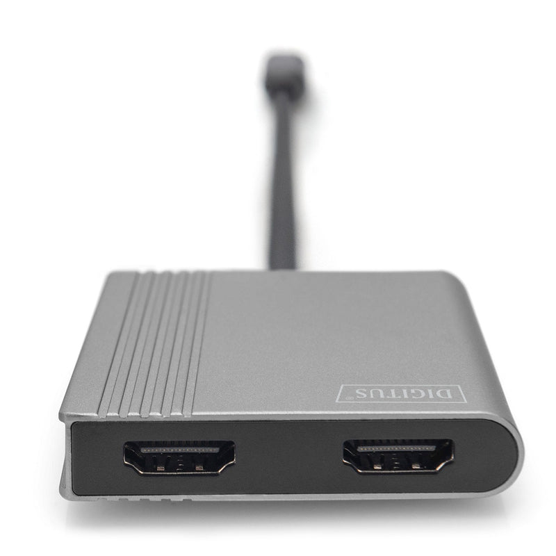 USB-C Adapter DIGITUS 2x HDMI Adapter 18cm 4K/30Hz Silber Aluminium Gehäuse