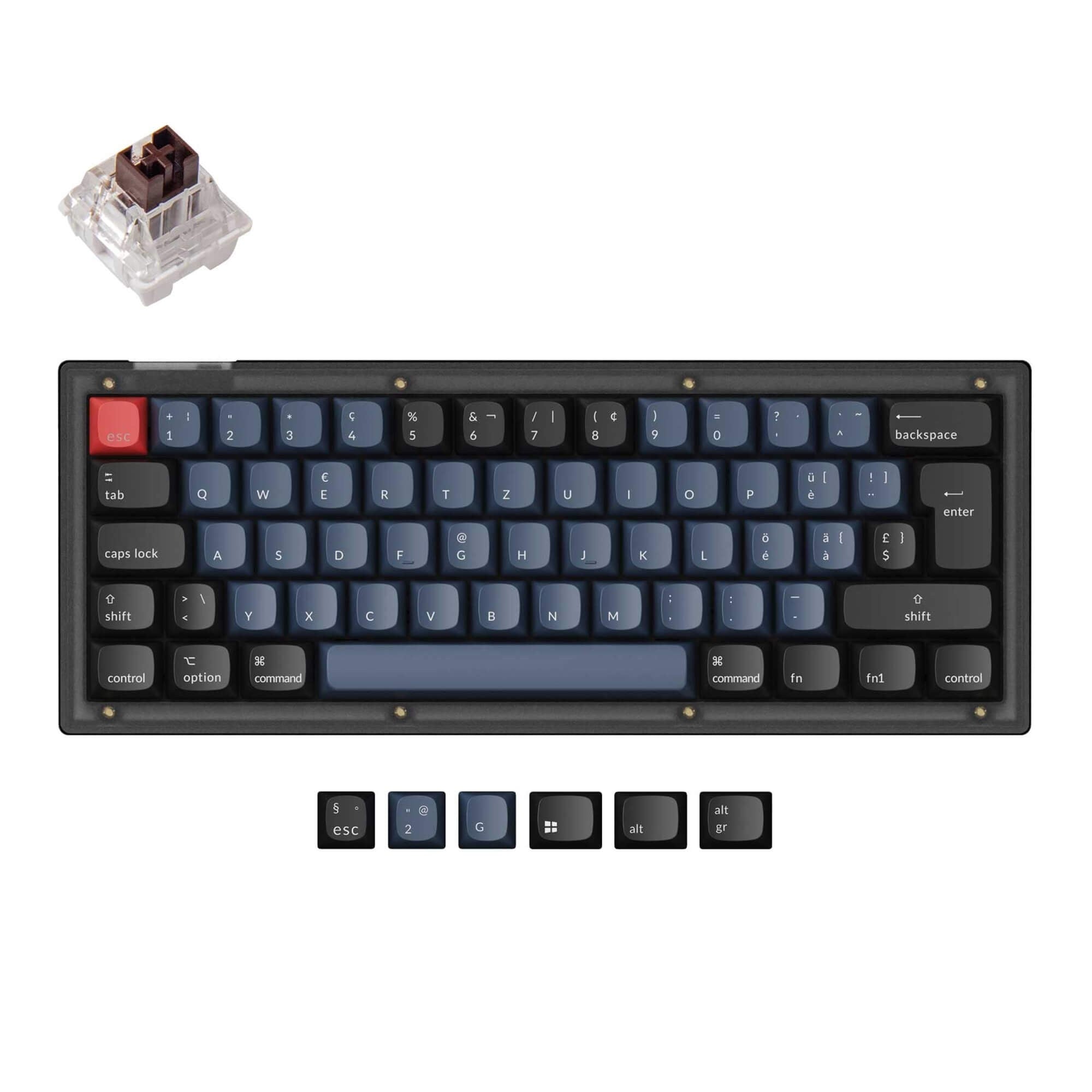 Vergleichen Sie die V4 mit der Q-Serie: Während letzteres über ein Aluminiumgehäuse im Double-Gasket-Design verfügt, präsentiert sich die V-Serie mit einem robusten ABS-Kunststoffgehäuse im Tray Mount Design. Trotz der Kosteneffizienz bleiben viele der Premium-Merkmale der Q-Serie erhalten, was die V4 zu einer hervorragenden Wahl für jeden Tastaturenthusiasten macht.