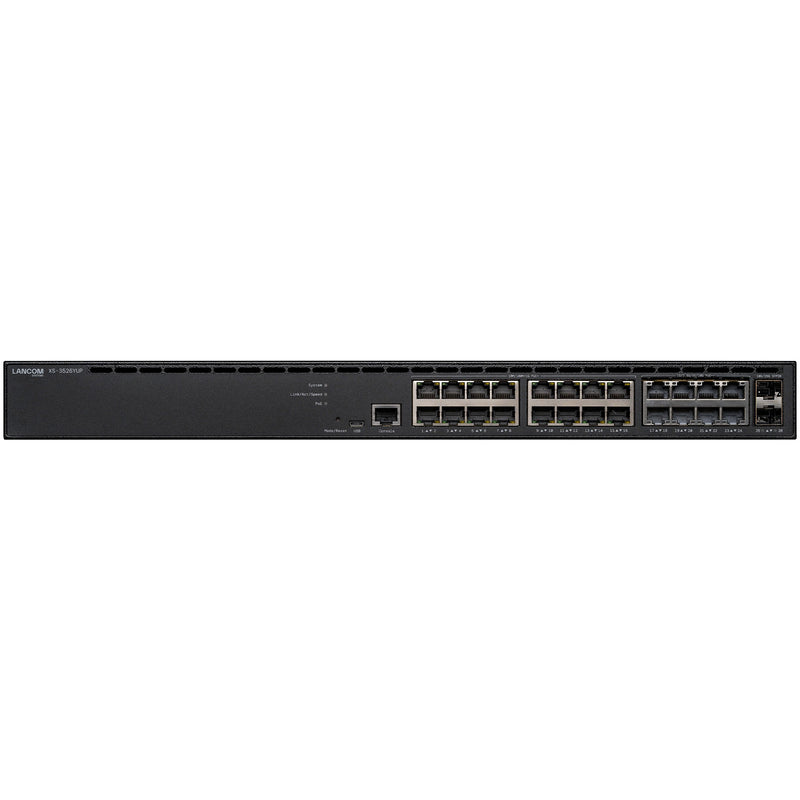 LANCOM XS-3526YUP. Switch-Typ: Managed. Switch-Ebene: L2/L3. Basic Switching RJ-45 Ethernet Ports-Typ: 2.5G Ethernet (100/1000/2500). Anzahl der basisschaltenden RJ-45 Ethernet Ports: 24. Konsolen-Port: RJ-45. MAC-Adressentabelle: 32000 Eintragungen. Netzstandard: IEEE 802.1D. IEEE 802.1s. IEEE 802.1w. IEEE 802.3af. IEEE 802.3at. IEEE 802.3bt. Netzstecker: AC-Eingangsbuchse. Power over Ethernet (PoE). Rack-Einbau. Formfaktor: 1U