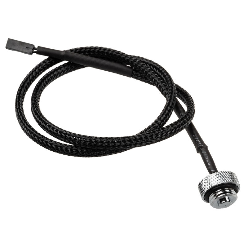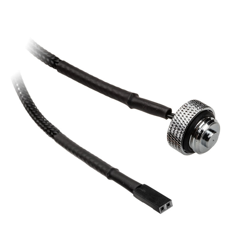 Der Sensor verfügt über zwei G1/4-Zoll-Innengewinde, die eine einfache Montage und Anpassung in nahezu jedes Wasserkühlungssystem ermöglichen. Das schwarz gesleevte Kabel hat eine praktische Länge von 50 cm, was eine flexible Installation garantiert, ohne dass Sie sich um Kabelsalat sorgen müssen.